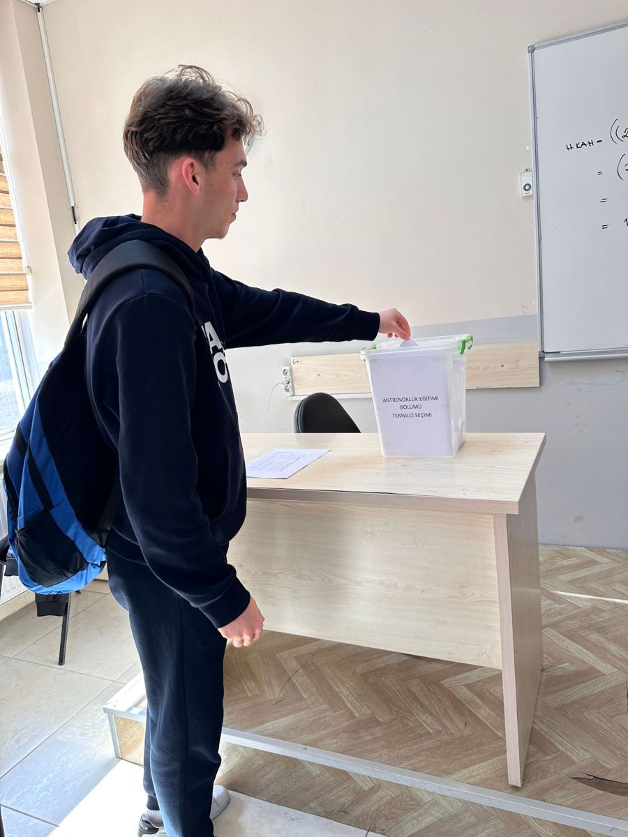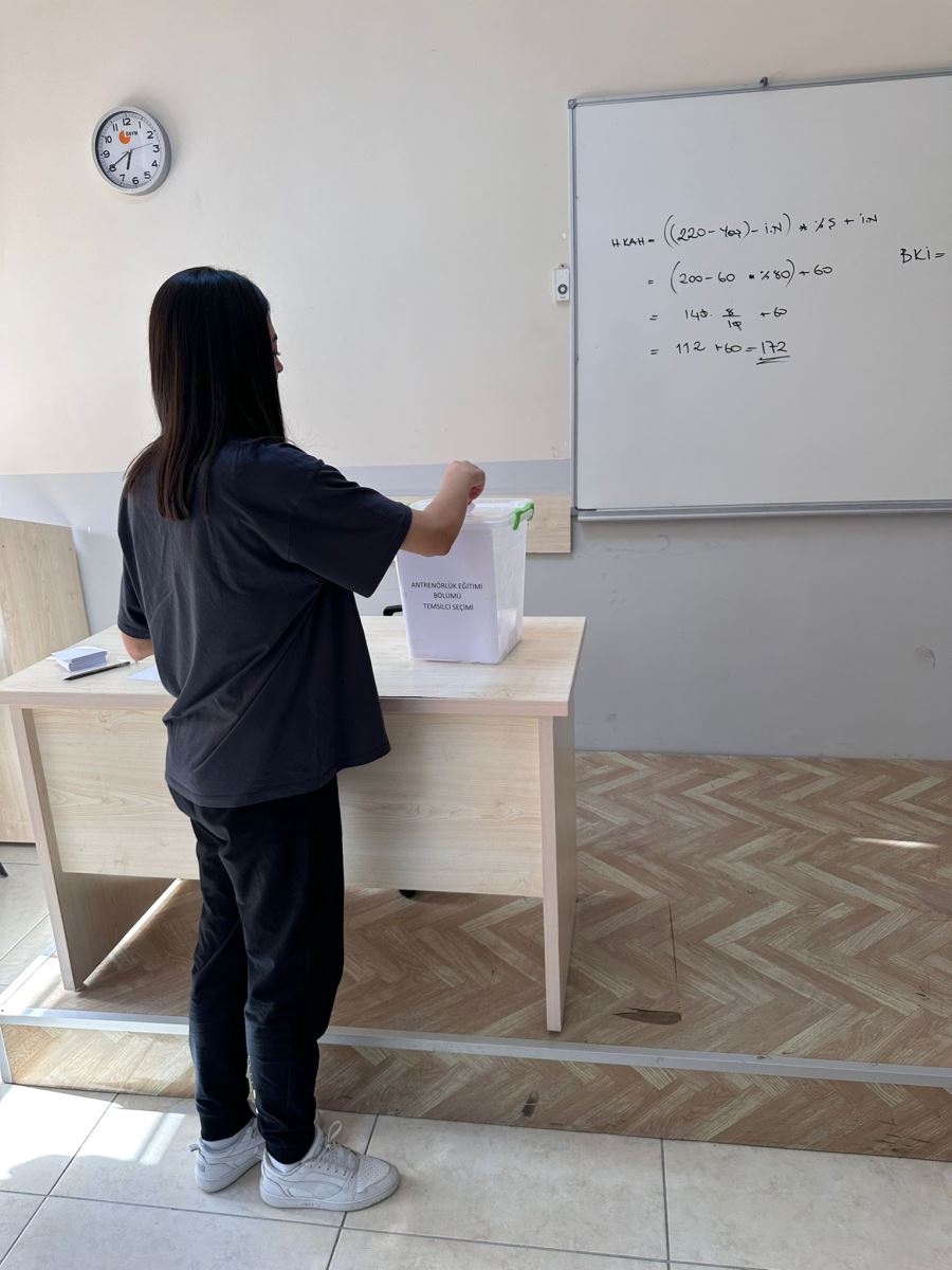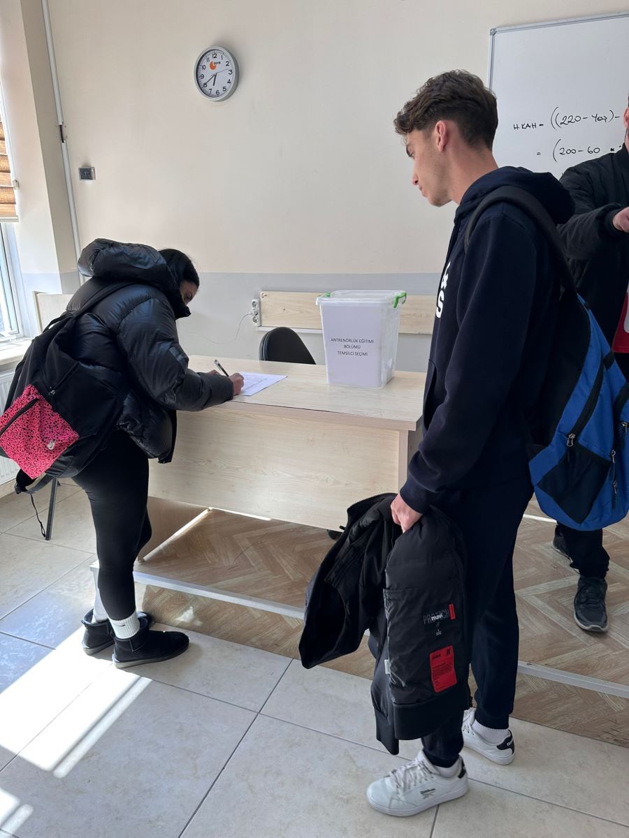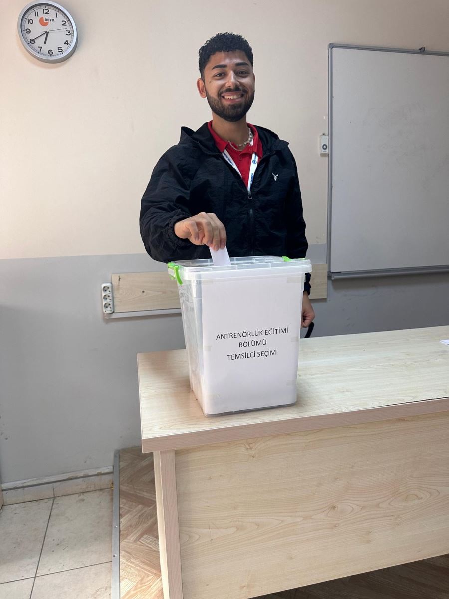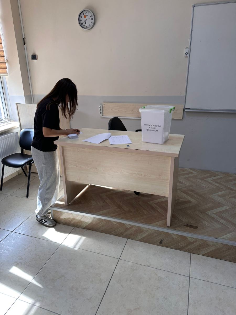 Antrenörlük Eğitimi Bölümü Öğrenci Temsilcisi Seçimi, 27/11/2025 tarihinde saat 17:00’da toplam 168 öğrencinin katılımı ile tamamlanmıştır. Yapılan oy sayımı sonucunda adaylardan Buse KABASARI 100 oy, Abdurrahman TÜRKOĞLU ise 64 geçerli oy almıştır. Bu sonuçlara göre Buse KABASARI, Antrenörlük Eğitimi Bölümü Öğrenci Temsilcisi olarak seçilmiştir. Kendisine bölümümüzle ilgili çalışmalarında başarılar dileriz.