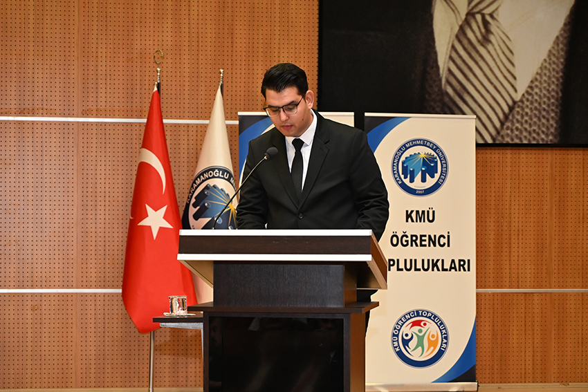 Törene Karaman Valisi Mehmet Fatih Çiçekli, Karaman Belediye Başkan Yardımcısı Eyüp Hüsamettin Aslan, Rektör Prof. Dr. Mehmet Gavgalı, il protokolü, akademisyenler ve öğrenciler katıldı. Öğrencilerin yoğun ilgi gösterdiği tören, saygı duruşu ve İstiklal Marşı’nın okunması ile başladı. KMÜ Müzik Bölümü öğretim üyeleri müzik resitali sunarken, Sağlık Bilimleri Enstitüsü yüksek lisans öğrencisi Ali Rıza Sarı da öğrenciler adına bir konuşma yaptı.