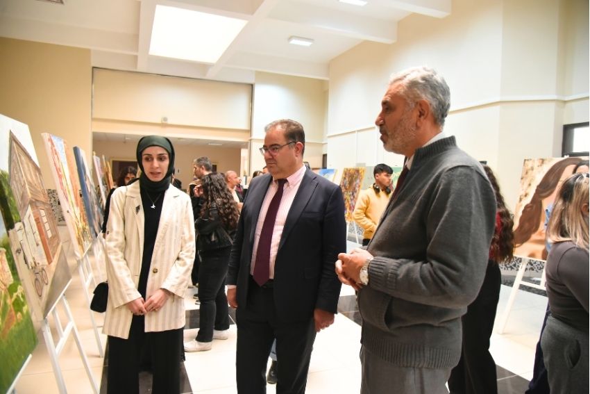 Rektör Yardımcısı Prof. Dr. Nevzat Aydın ise kısa konuşmasında sanatın, yaşamın farklı yönlerinin soyut anlatımlarla yeniden yorumlandığı bir alan olduğuna dikkat çekerek serginin hazırlanmasında emeği geçen akademisyen ve öğrencilere teşekkür etti.