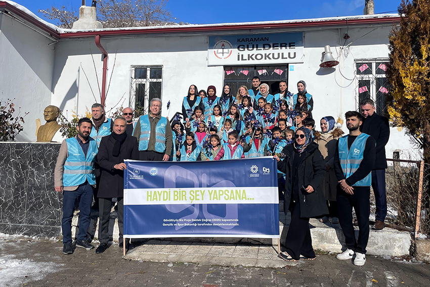 Karamanoğlu Mehmetbey Üniversitesi (KMÜ) Teknik Bilimleri Meslek Yüksekokulu Üretimde Kalite Kontrol Programı öğrencileri tarafından yürütülen ve Gençlik ve Spor Bakanlığı Gençlik Projeleri Destek Programı kapsamında desteklenen “Haydi Bir Şey Yapsana” adlı gönüllülük projesi, Karaman ili Güldere Köyü İlkokulu’nda hayata geçirildi.