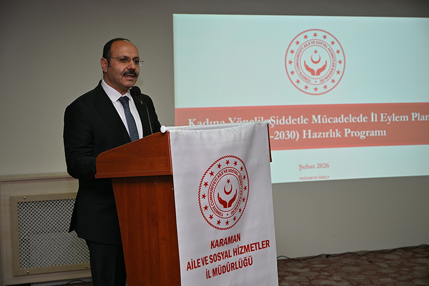 Karaman Aile ve Sosyal Hizmetler İl Müdürü Nurettin Ulaş konuşmasında, 2022–2024 yılları arasında uygulanan Kadına Yönelik Şiddetle Mücadele Eylem Planı kapsamında 81 ilde, her ilde 15–20 kurum temsilcisinin katılımıyla kapsamlı çalışmalar yürütüldüğünü belirtti. Kurumların kendi görev alanlarında yapacakları iyileştirmelerle planın zenginleştirildiğini ifade eden Ulaş, hazırlanan raporların 2025 yılında ilgili Bakanlığa sunulduğunu ve programın başarılı olarak değerlendirildiğini aktardı.