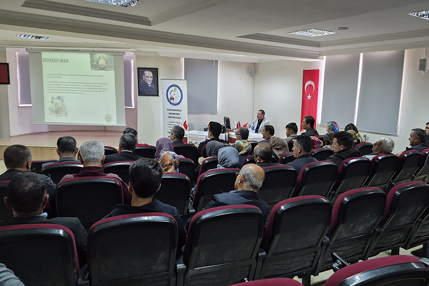 Karamanoğlu Mehmetbey Üniversitesi (KMÜ) ile Ayrancı İlçe Tarım ve Orman Müdürlüğü iş birliğinde düzenlenen “Bölgesel Kalkınma Odaklı Kooperatifçilik ve Ürün Geliştirme” eğitimi tamamlandı.