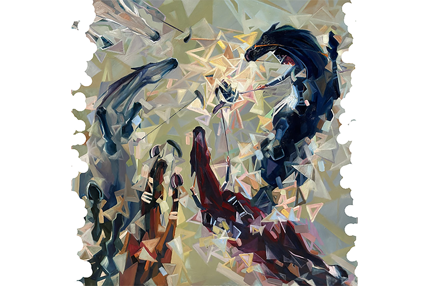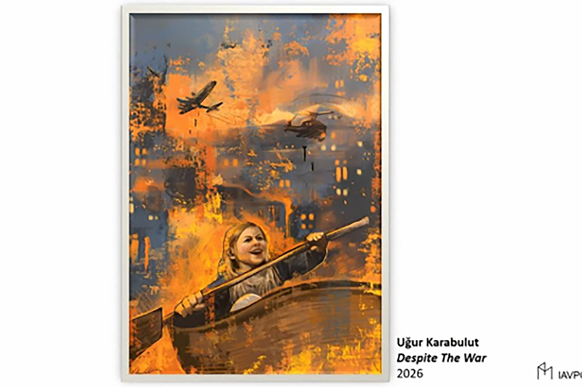 Dr. Öğr. Üyesi Uğur Karabulut’un dijital çizim (Procreate) tekniğiyle hazırladığı “Savaşa Rağmen” adlı eser, savaşın yıkıcı etkilerine rağmen insanın direncini ve var olma mücadelesini güçlü bir görsel anlatımla ele almasıyla öne çıktı.