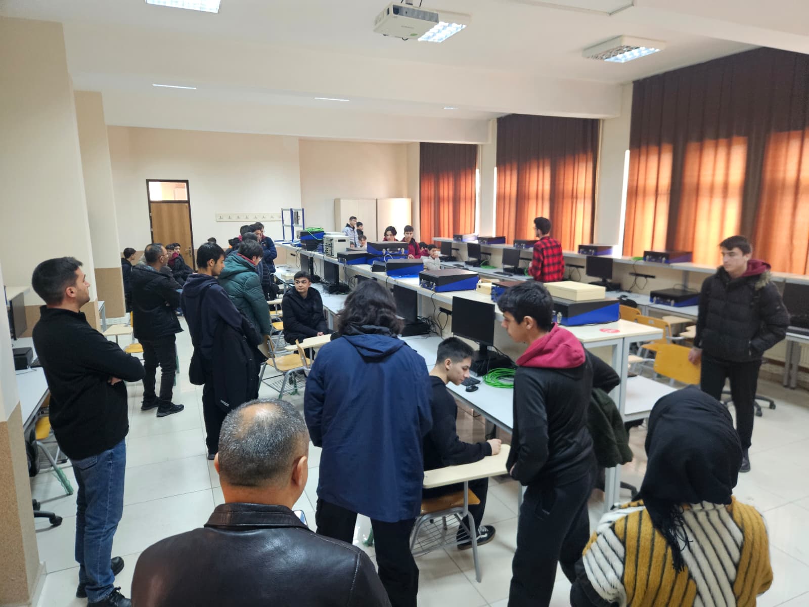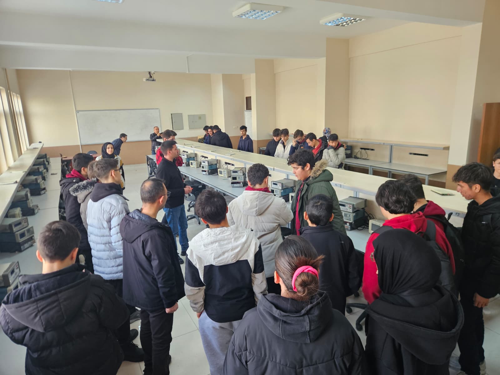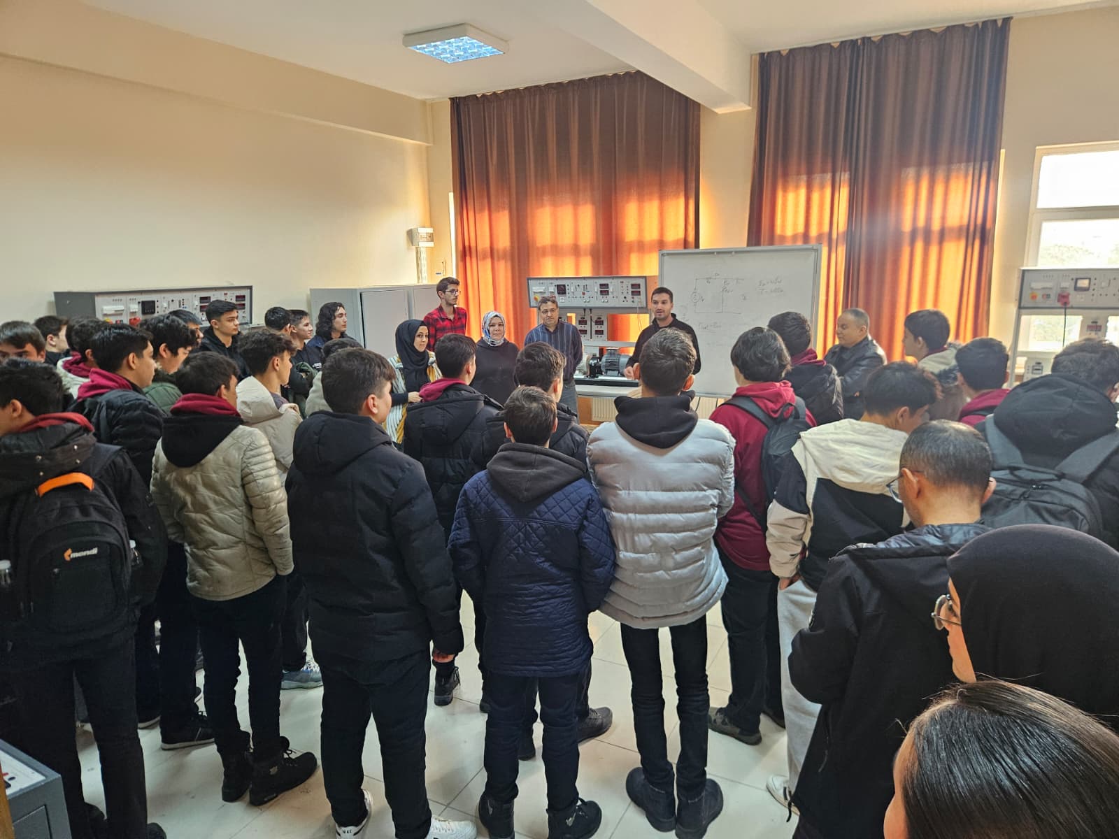 Programın devamında öğrenciler, bölümümüz laboratuvarlarını yerinde inceleme fırsatı bulmuş; yürütülen projeler ve uygulamalı çalışmalar hakkında bilgi almışlardır. Ayrıca Elektrik-Elektronik Mühendisliği Bölümü laboratuvarları da gezilerek disiplinler arası çalışma alanları ve mühendislik uygulamalarının farklı boyutları öğrencilere tanıtılmıştır.