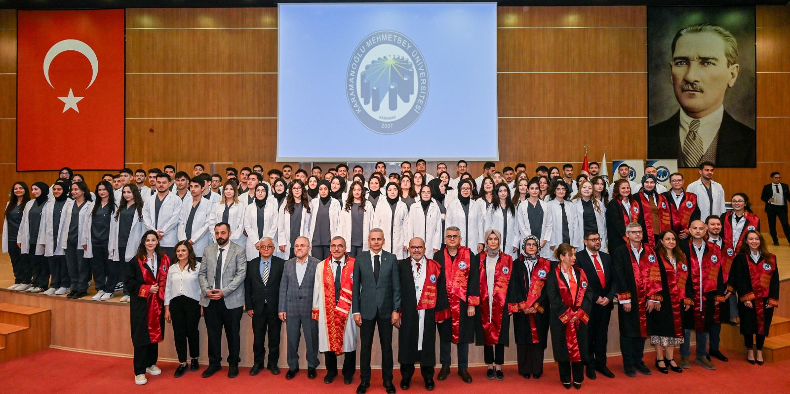 Karamanoğlu Mehmetbey Üniversitesi (KMÜ) 15 Temmuz Konferans Salonu'nda Fakültemiz öğrencilerinin meslekî hayatlarına attıkları ilk adımı simgeleyen “Beyaz Önlük Giyme Töreni” gerçekleştirildi.