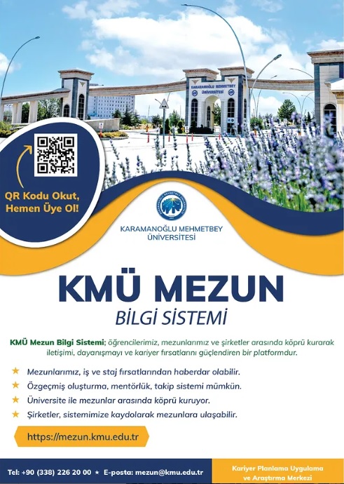 Mezun olan tüm öğrencilerimizle daha etkili iletişime geçebilmek ve üniversitemiz ile mezunlarımız arasında bir bağ oluşturmak adına üniversitemiz Kariyer Planlama Uygulama ve Araştırma Merkezi tarafından Mezun Bilgi Sistemi'ni oluşturuldu.