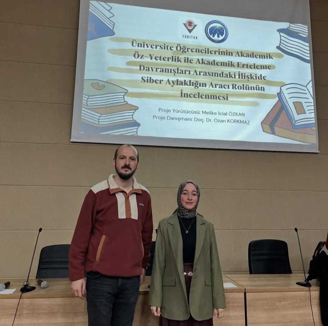 Rehberlik ve Psikolojik Danışmanlık Lisans Programı öğrencisi Melike İclal ÖZKAN tarafından yürütülen “Üniversite Öğrencilerinin Akademik Öz-Yeterlik ile Akademik Erteleme Davranışları Arasındaki İlişkide Siber Aylaklığın Aracı Rolünün İncelenmesi” başlıklı proje ile Rehberlik ve Psikolojik Danışmanlık Lisans Programı öğrencisi Dilara ÖZ tarafından yürütülen “Yeni Mezun Psikolojik Danışmanların İşe Geçişini Kolaylaştıran ve Zorlaştıran Faktörler” başlıklı proje fakültemizde sunularak başarıyla tamamlanmıştır.