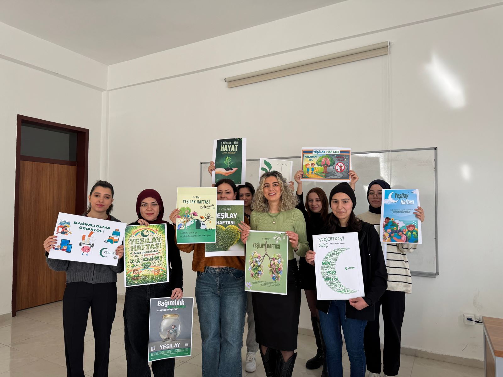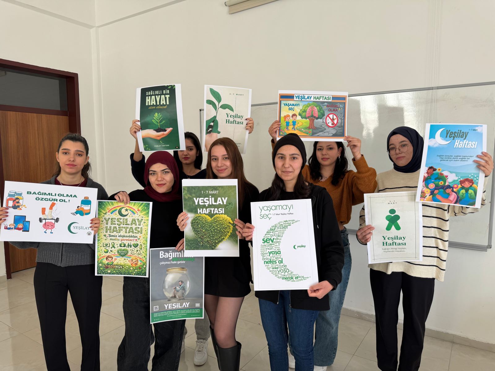 Eczane Hizmetleri Programı 1. sınıf öğrencileri,Gönüllülük Çalışmalarıdersi kapsamında Dr. Öğr. Üyesi Elif ÇATIKKAŞ öncülüğünde Yeşilay Haftasına dikkat çekmek amacıyla poster çalışması hazırladı. Öğrenciler tarafından hazırlanan posterlerde alkol, tütün, madde ve teknoloji bağımlılığının zararlarına vurgu yapılarak sağlıklı yaşam konusunda farkındalık oluşturulması hedeflendi.