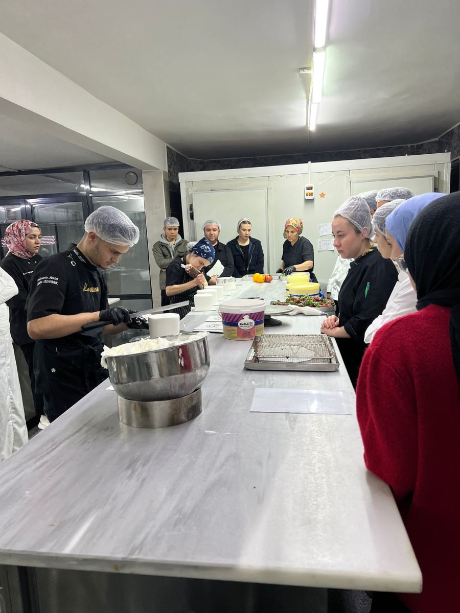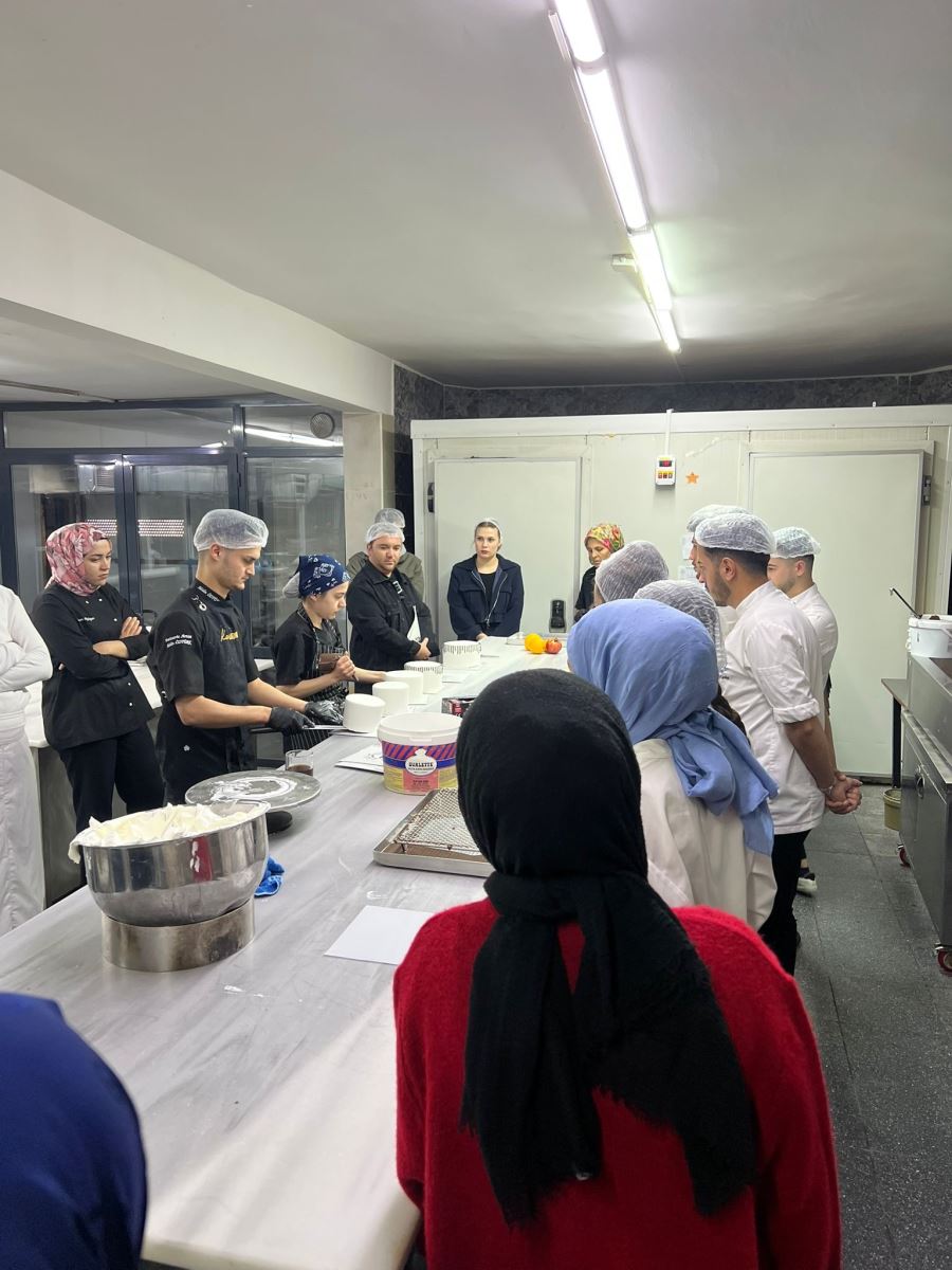 Ayrıca ustalar tarafından gerçekleştirilen pratik gösterimler sayesinde öğrenciler, hem geleneksel hem de modern pastacılık tekniklerinin işleyişini deneyimleyerek öğrenme şansı elde etti. Sektörün üretim disiplini, hijyen kuralları ve zaman yönetimi gibi önemli noktalar da gezi kapsamında vurgulandı. Bu teknik gezi, öğrencilerin teorik bilgilerini uygulamalı örneklerle pekiştirmesine ve mesleki farkındalıklarını artırmasına önemli katkı sağlamıştır.