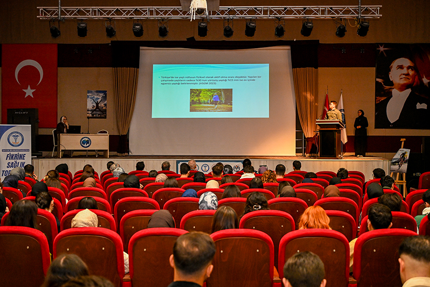 Saygı duruşu ve İstiklal Marşı’nın okunmasıyla başlayan programda, Karaman İl Sağlık Müdürlüğü Toplum Sağlığı Merkezinde görev yapan Fizyoterapist Rıfat ARSLAN, sedanter yaşamın sağlık üzerindeki olumsuz etkileri ile fiziksel aktivitenin yaşam boyu önemi hakkında bir konferans verdi. Ardından Fizyoterapist Paşa Nur DURA, günlük yaşamda uygulanabilecek temel fiziksel aktiviteleri tüm katılımcılarla birlikte uygulamalı olarak gerçekleştirdi.