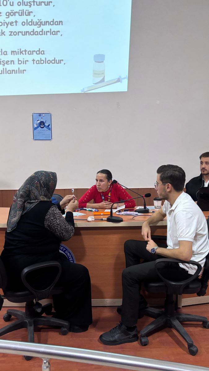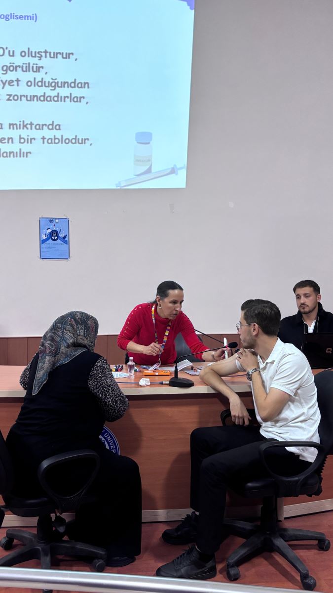 Etkinlikte diyabet hastalığı, kan şekeri takibi, insülin kullanımı ve sağlıklı yaşam alışkanlıklarının önemi hakkında bilgilendirmeler yapıldı. Ayrıca eğitimci ve öğrenciler tarafından “Tip 1, Tip 2 ve Gestasyonel Diyabet” olmak üzere üç tip diyabet ile ilgili rol play (canlandırma) yapıldı. Yapılan canlandırmalar sayesinde katılımcıların diyabet türleri arasındaki farkları, belirtileri ve tedavi süreçlerini daha iyi kavraması amaçlandı. Canlandırmaların, tarafından ilgiyle takip edildiği programda, katılımcılar günlük yaşamda uygulanabilecek pratik öneriler konusunda bilinçlendirildi.