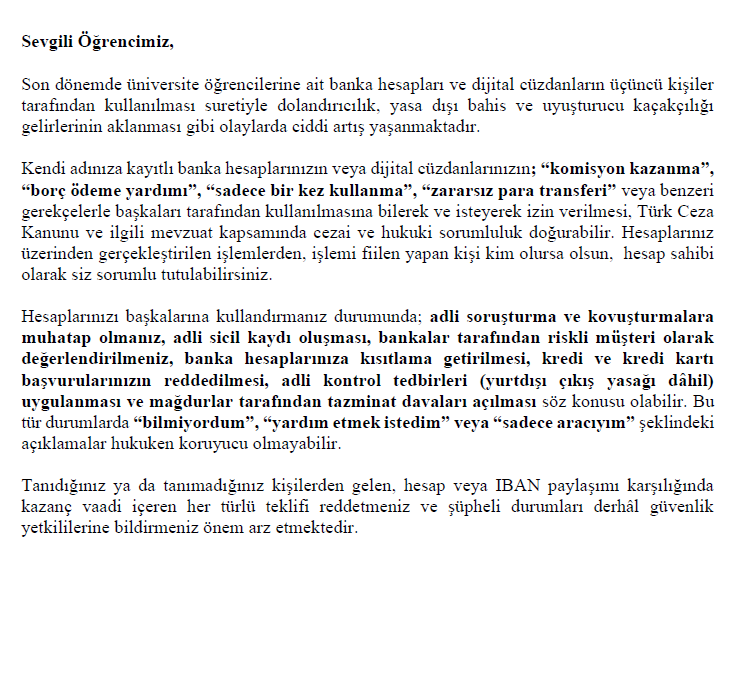 KULLANICILARIMIZIN DİKKATİNE-Banka Hesapları ve Dijital Ödeme Araçlarının Güvenli Kullanımı Hakkında