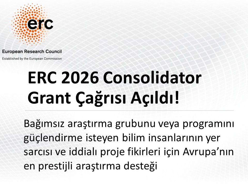 ERC 2026 Consolidator Grant Çağrısı Başvuruya Açıldı!