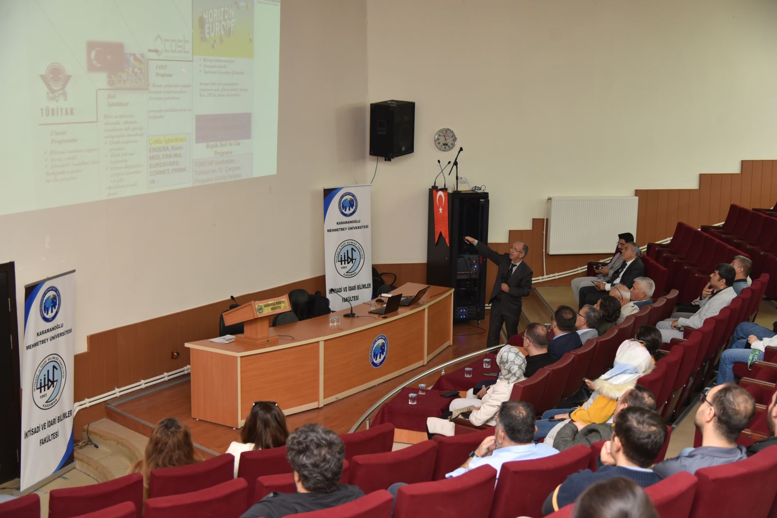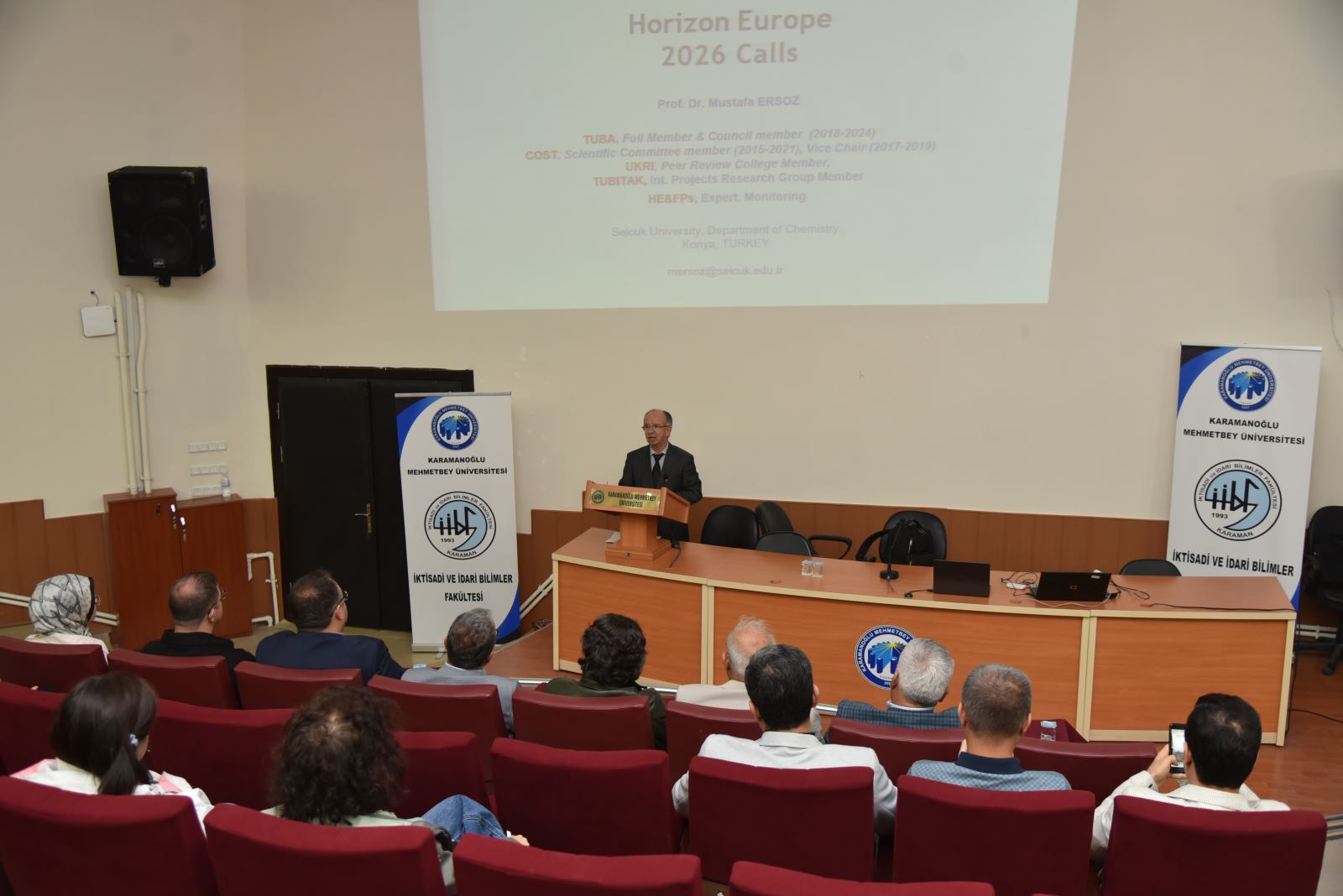 Karamanoğlu Mehmetbey Üniversitesi KMÜ Proje ve Teknoloji Transfer Ofisi koordinasyonunda, KMÜ İktisadi ve İdari Bilimler Fakültesi, Mühendislik Fakültesi ve Uygulamalı Bilimler Fakültesi iş birliğiyle düzenlenen “Ufuk Avrupa Genel Bilgilendirme ve 2026 Yılı Çağrı Başlıkları” etkinliği gerçekleştirildi.