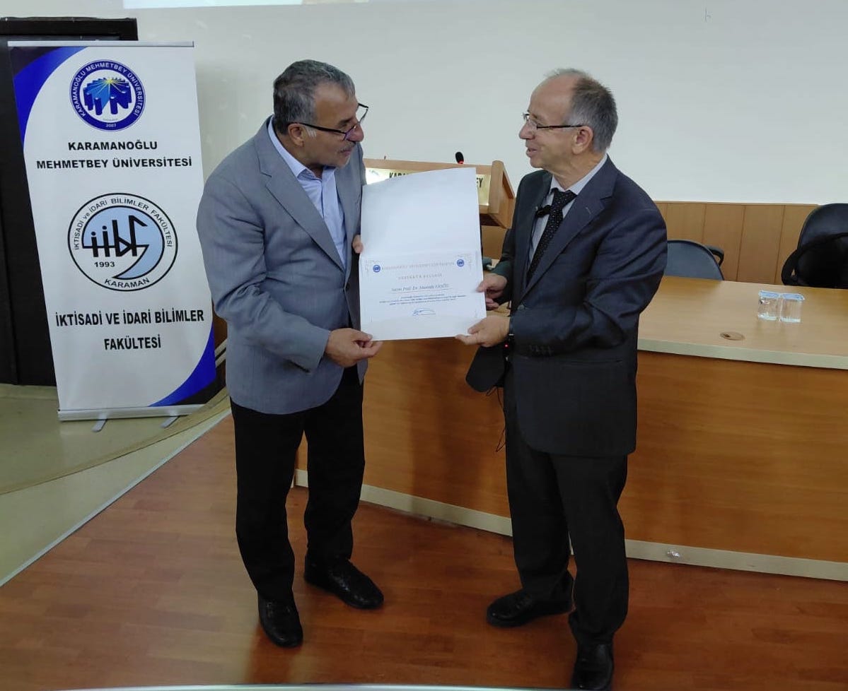 Eğitimin sonunda Prof. Dr. Mustafa Ersoz’e teşekkür belgesi, Rektör Prof. Dr. Mehmet Gavgalı tarafından takdim edildi.