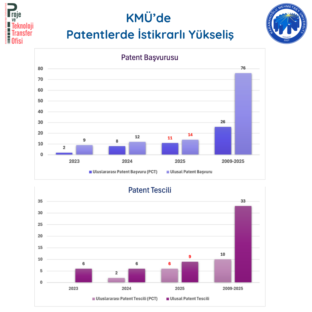 Karamanoğlu Mehmetbey Üniversitesi’nde patent başvuru ve tescil sayıları son yıllarda istikrarlı bir artış göstermektedir.