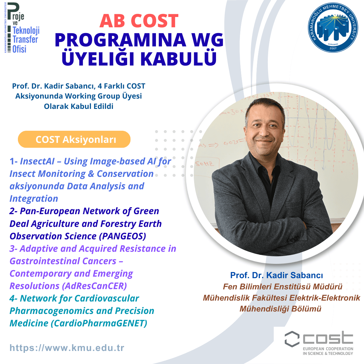 🌍 Prof. Dr. Kadir SABANCI Dört Farklı COST Aksiyonunda Görev Alacak