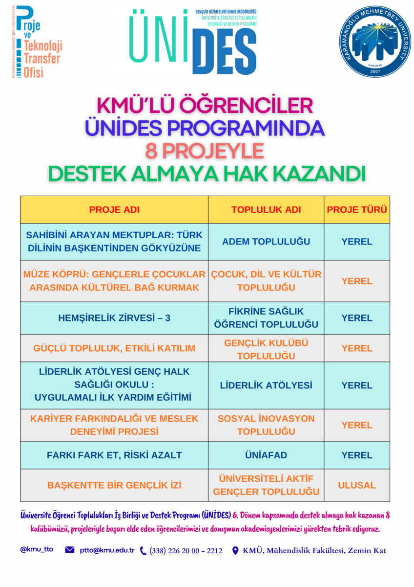 🏆 KMÜ öğrencileri ÜNİDES kapsamında hem ulusal hem de yerel düzeyde destek almaya hak kazandı.