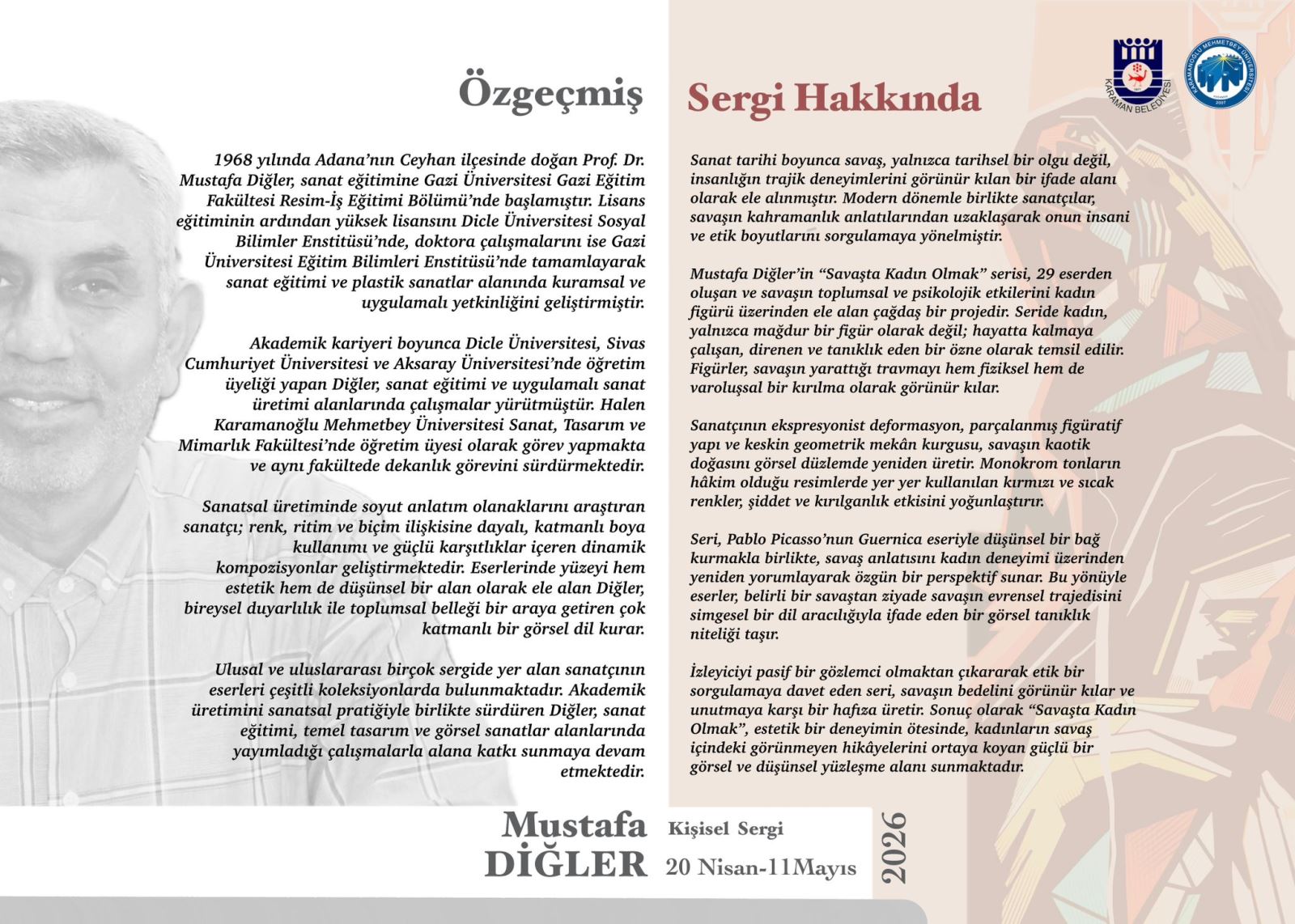 Sayın Dekanımız Prof. Dr. Mustafa Diğler'in "Savaşta Kadın Olmak" Konulu Kişisel Sergisi 20 Nisan 11.00