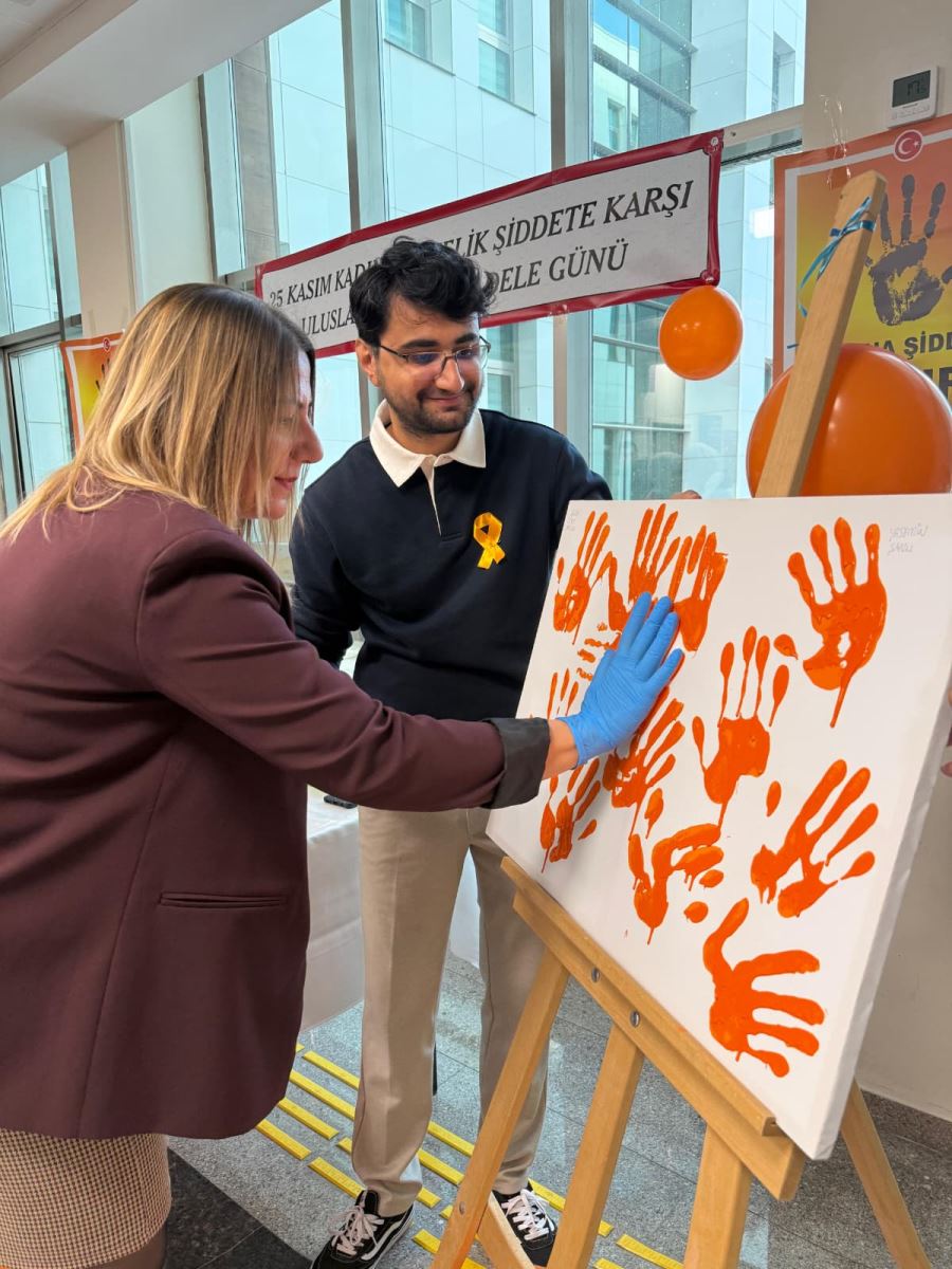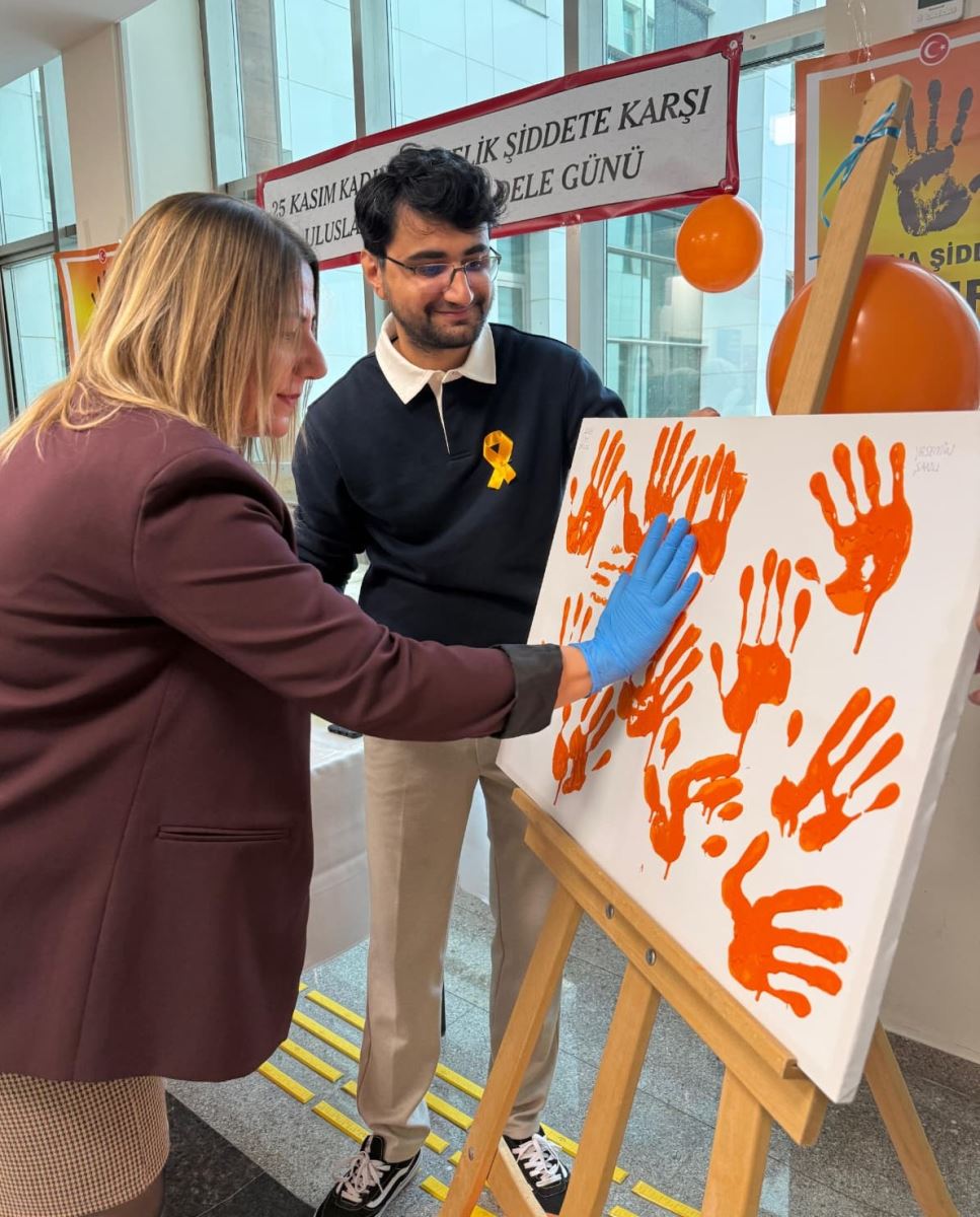 Organizasyon kapsamında kadına yönelik şiddetle mücadelede toplumsal bilincin önemine dikkat çekildi. Katılımcılar, şiddete karşı ortak bir duruş sergilemek ve bu mücadeleye destek vermek amacıyla hazırlanan tuvale sembolik olarak el basarak “Şiddete Dur De!” mesajını verdiler.
