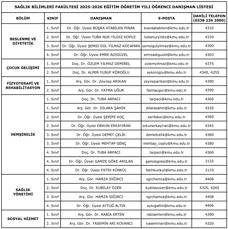 SAĞLIK BİLİMLERİ FAKÜLTESİ