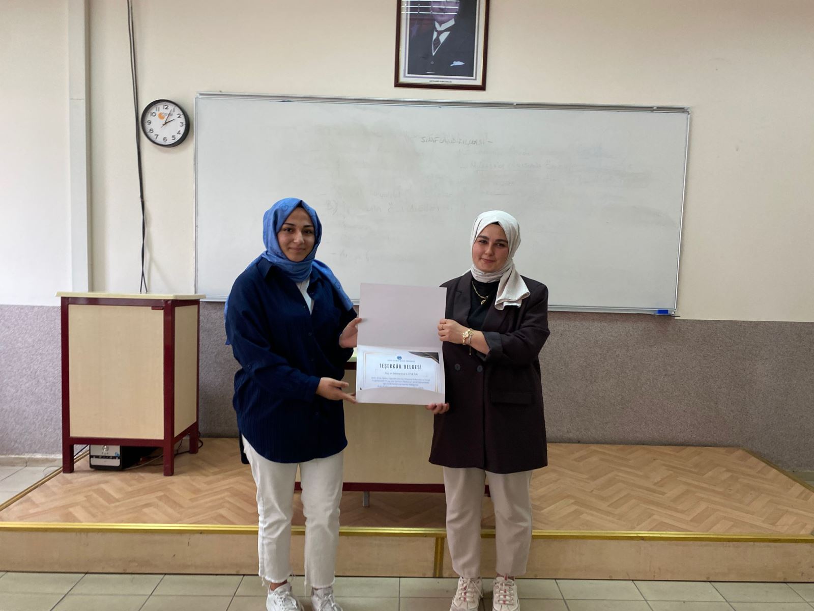 Etkinliğin sonunda, katkılarından dolayı Sümeyye Ceylan’a teşekkür belgesi öğrencimiz Ayşe Ersöz tarafından takdim edildi. 👏