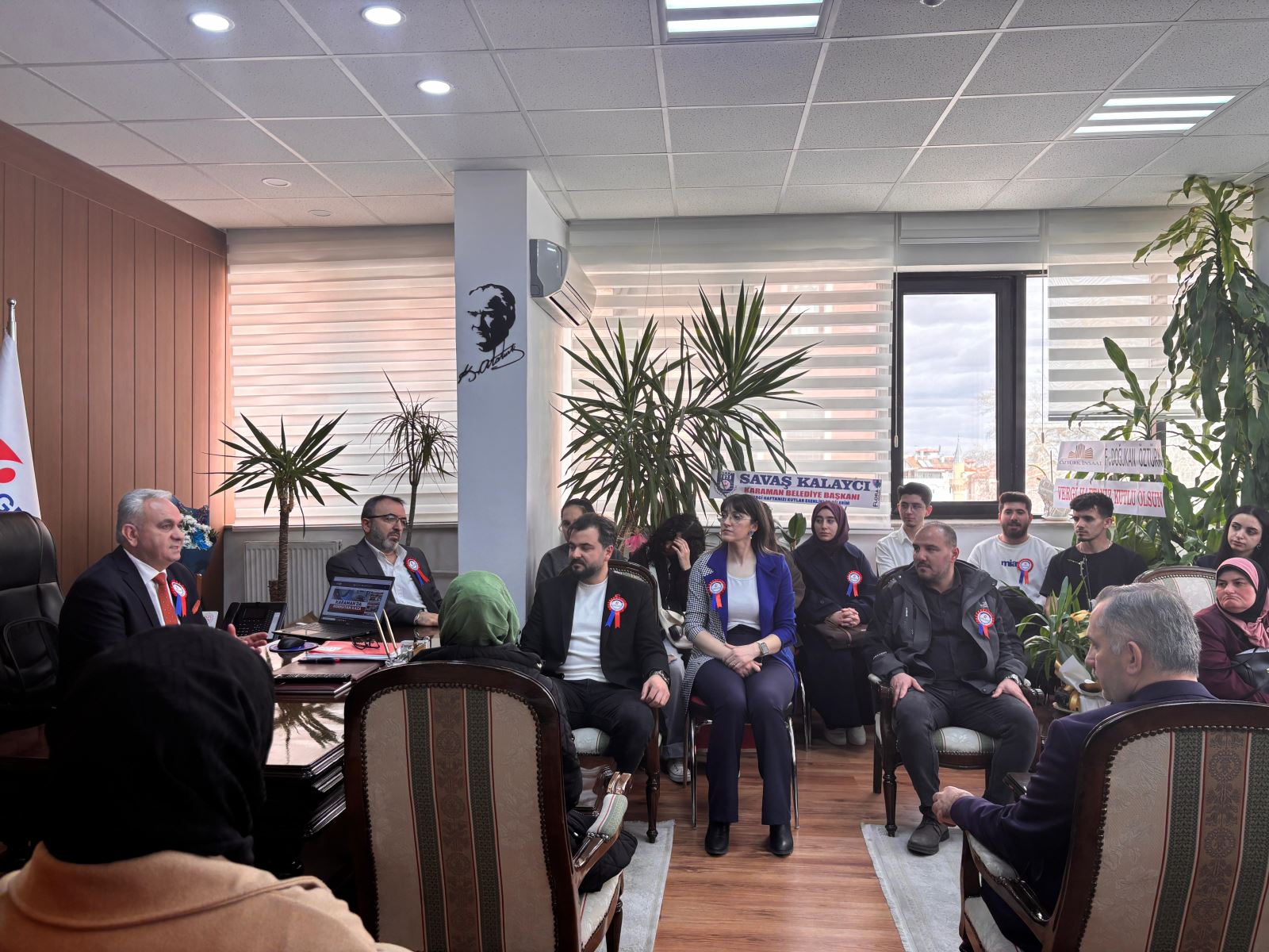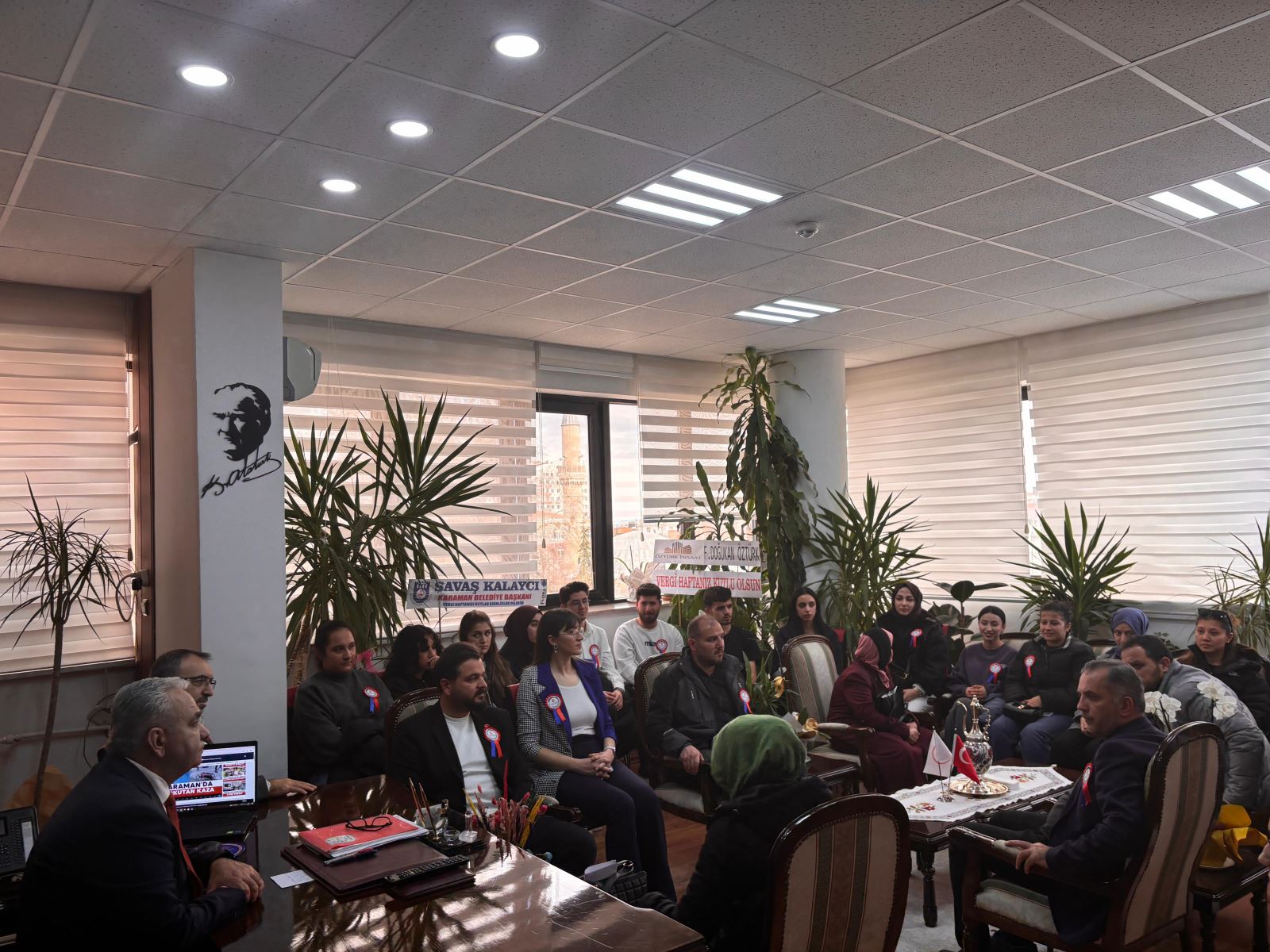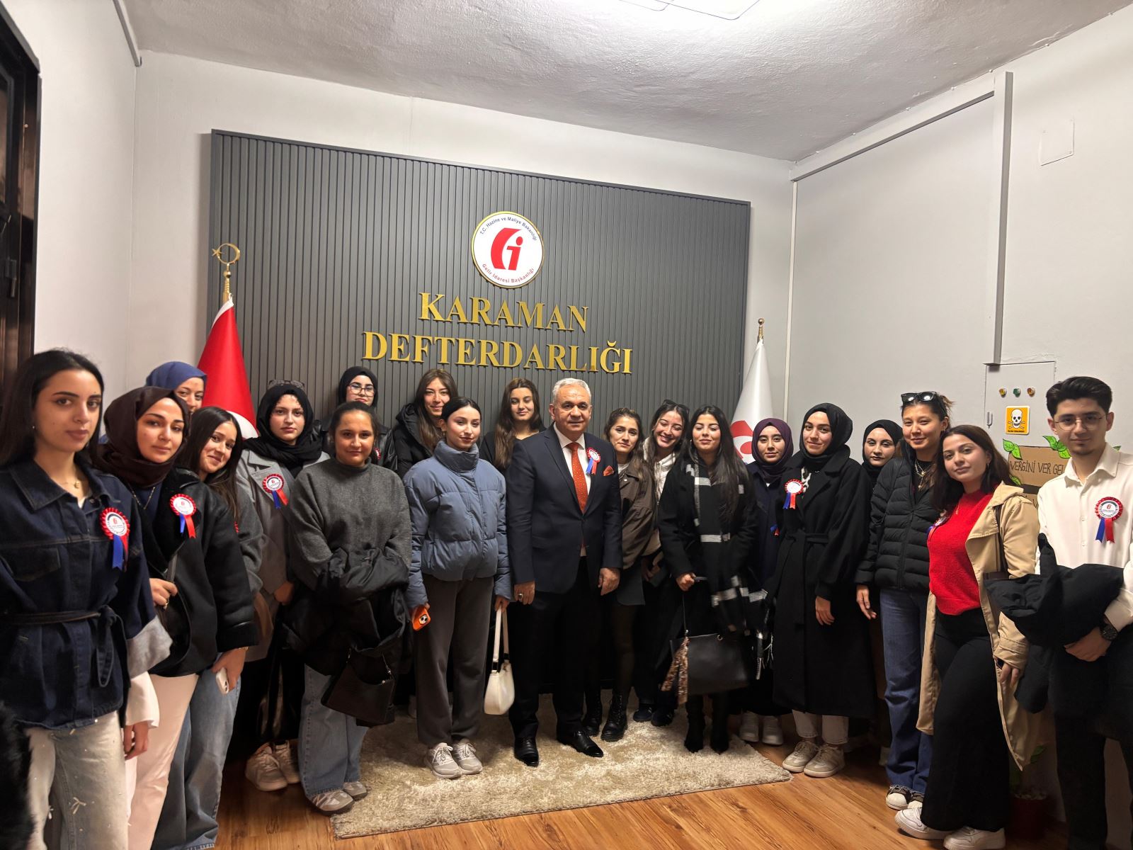 37. Vergi Haftası kutlamaları çerçevesinde, Sosyal Bilimler Meslek Yüksekokulu Müdürü Doç. Dr. Kasım Karataş, Müdür Yardımcısı Dr. Öğr. Üyesi Okan Garip, Muhasebe ve Vergi Uygulamaları Bölüm Başkanı Dr. Öğr. Üyesi Esra Yıldız, bölüm öğretim elemanları Öğr. Gör. Dr. Taha Gezgin ile Öğr. Gör. Fatih Mehmet Çuhadar ve muhasebe ve vergi uygulamaları bölüm öğrencileri, Karaman Defterdarlığı’nı ziyaret etti.