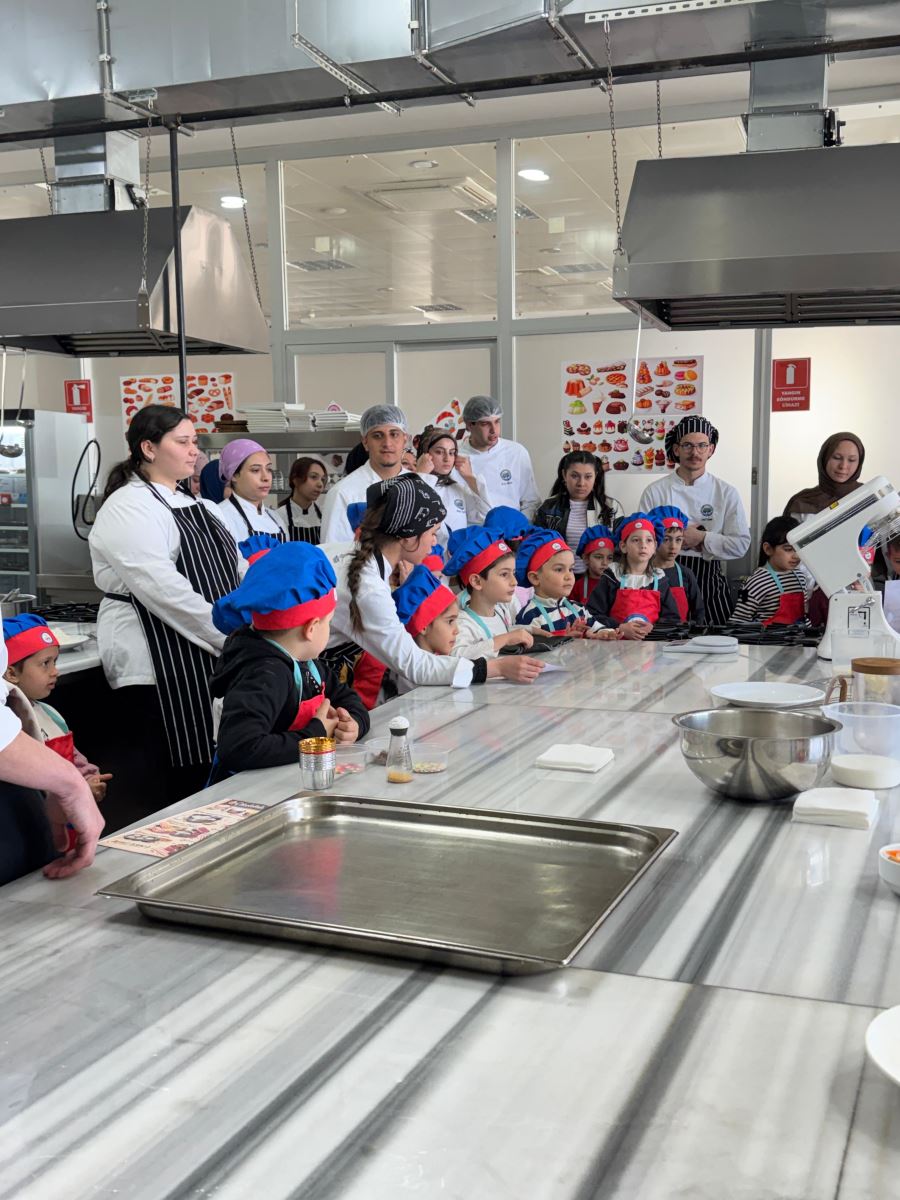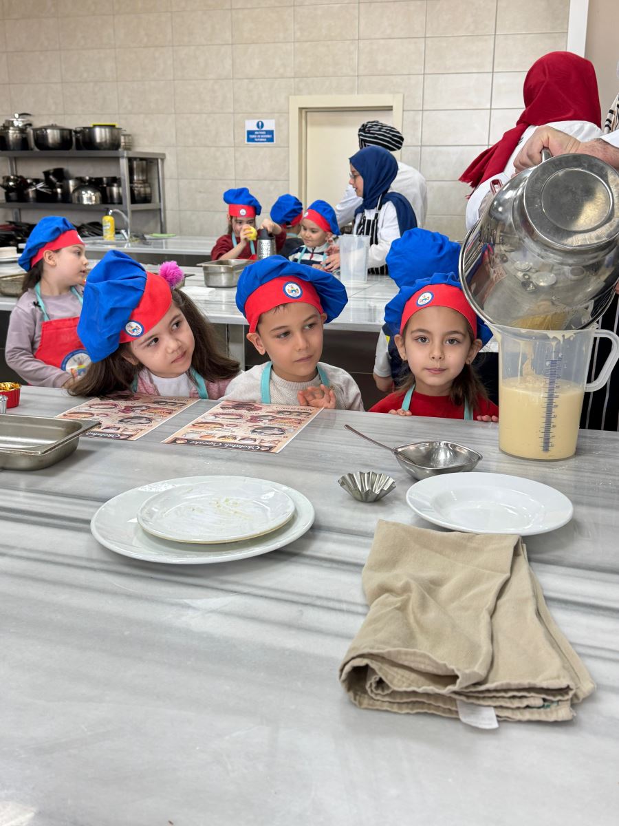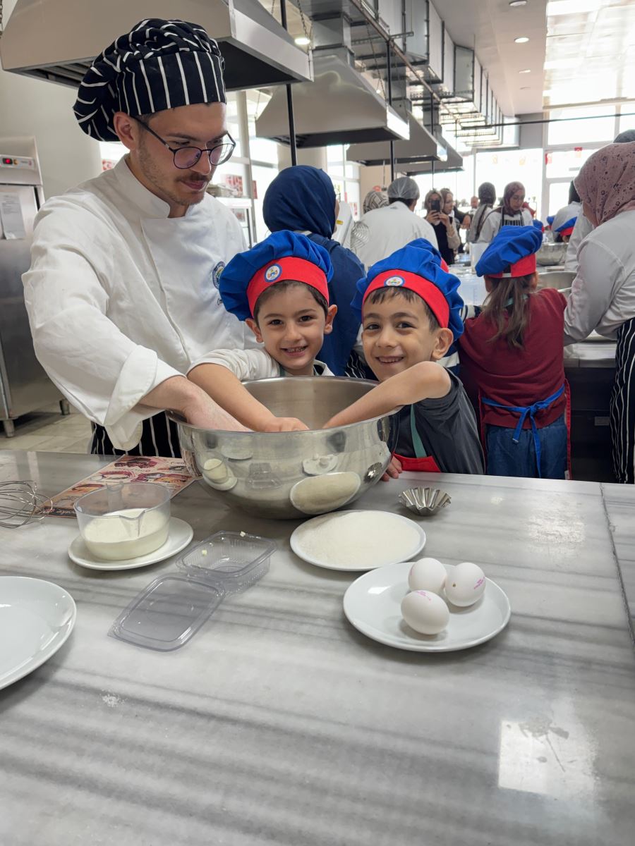 Renkli görüntülere sahne olan etkinlikte, çocukların mutfak becerilerini geliştirmelerine katkı sağlanırken, üniversite öğrencileri için de sosyal sorumluluk ve uygulamalı eğitim açısından önemli bir deneyim elde edildi.