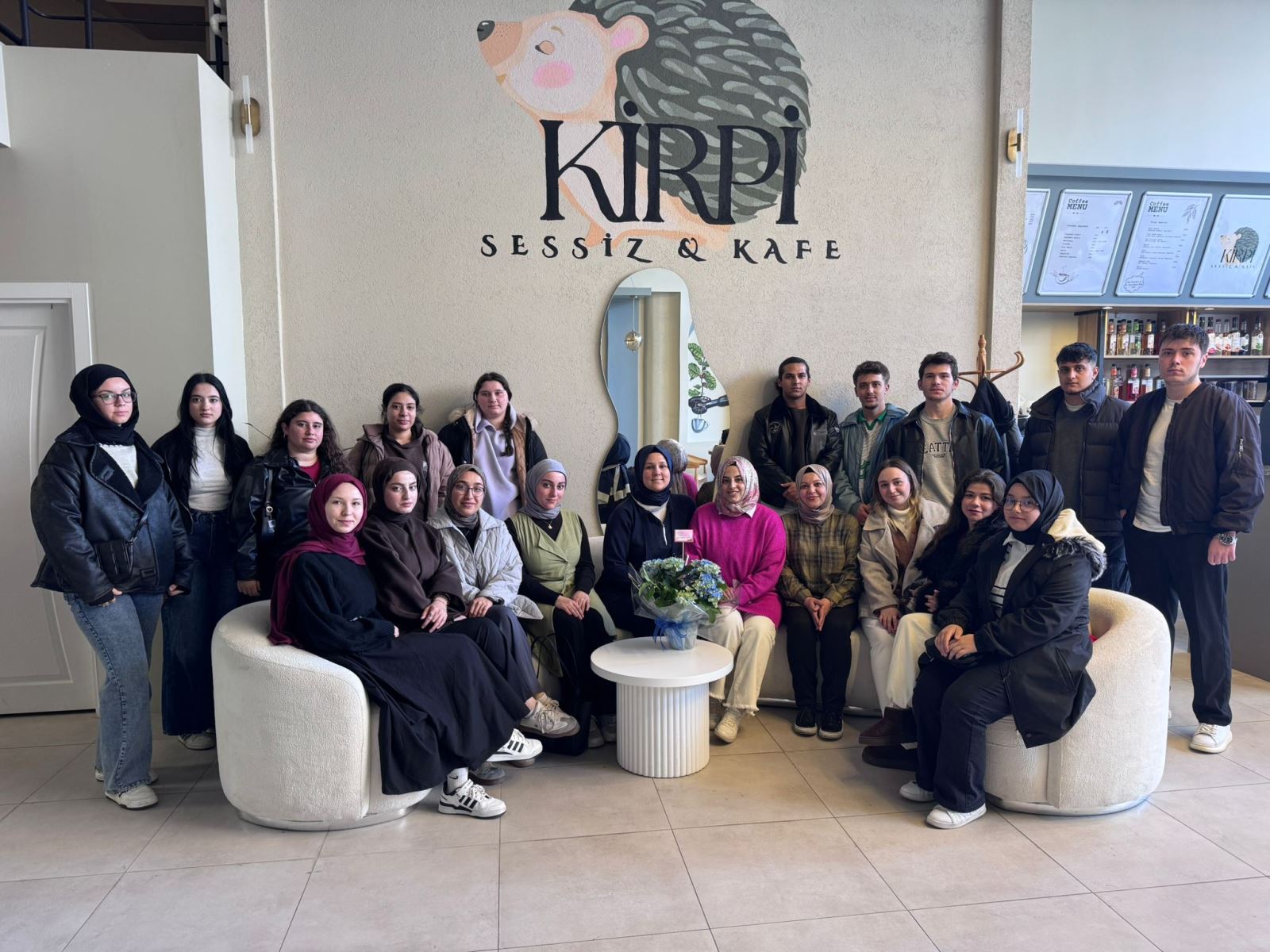 Öğr. Gör. Zeynep Çınar öncülüğünde düzenlenen ziyarette öğrenciler, Karaman’da yeni açılan sessiz kafeyi yerinde inceleme fırsatı buldu. İşletme kurucusu Fatmanur Sezer ile bir araya gelen öğrenciler, işletme kurulum süreci hakkında detaylı bilgiler aldı.