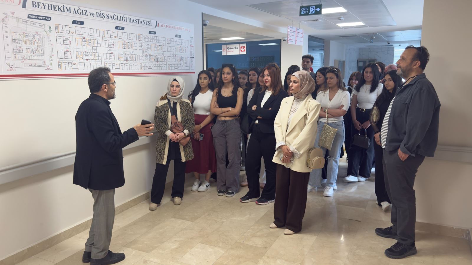 Teknik gezinin ikinci aşamasında ise Beyhekim Ağız ve Diş Sağlığı Hastanesi ziyaret edildi. Ziyaret kapsamında hastanenin idari ve klinik yapısı hakkında detaylı bilgiler paylaşıldı. Öğrenciler, sağlık kurumlarının işleyişi, hasta hizmetleri süreçleri ve yönetim uygulamalarını yerinde gözlemleme fırsatı buldu.