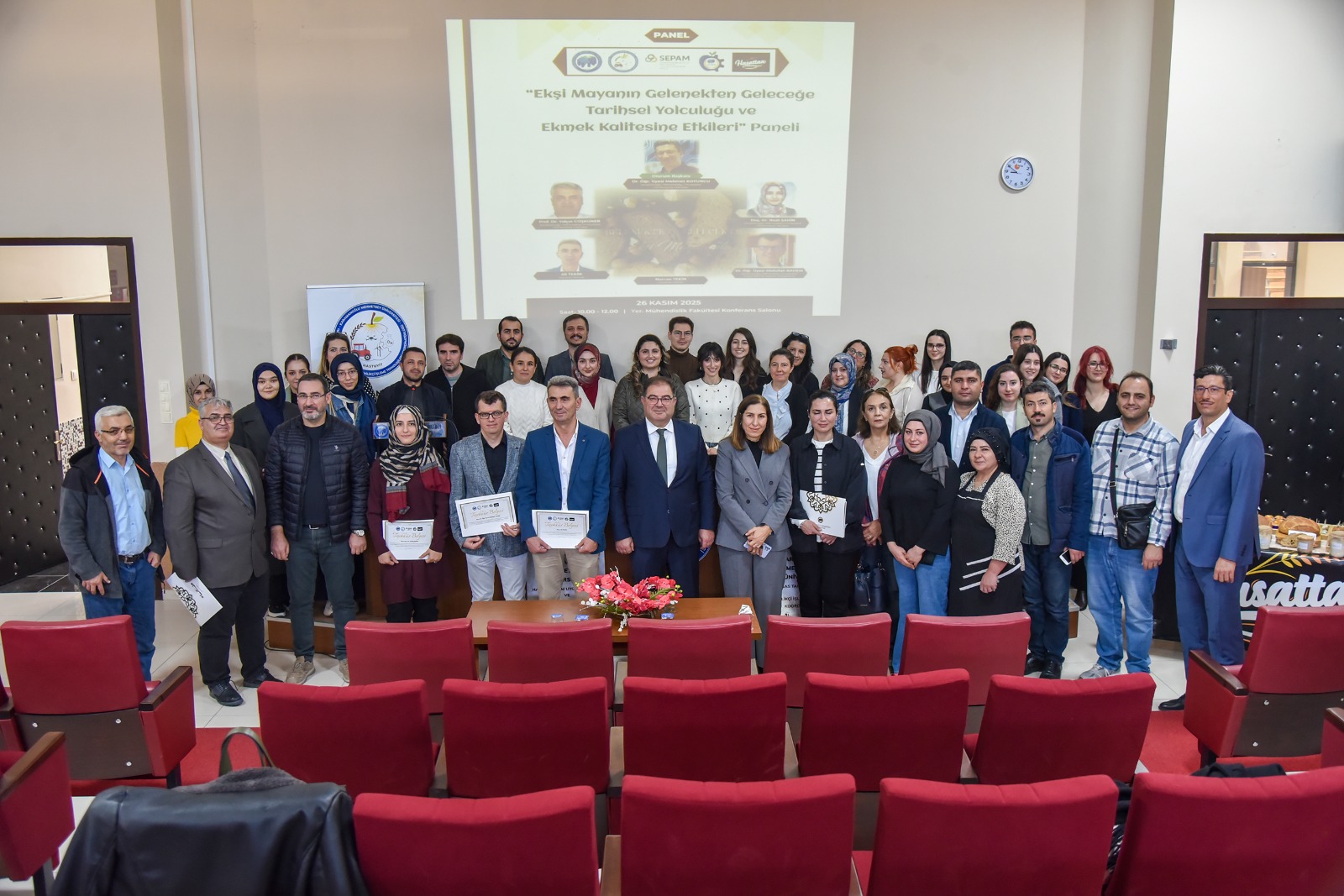 Karamanoğlu Mehmetbey Üniversitesi (KMÜ) ev sahipliğinde düzenlenen “Ekşi Mayanın Gelenekten Geleceğe Tarihsel Yolculuğu ve Ekmek Kalitesine Etkileri Paneli”, 26 Kasım 2025 Çarşamba günü Mühendislik Fakültesi Konferans Salonu’nda gerçekleştirildi.