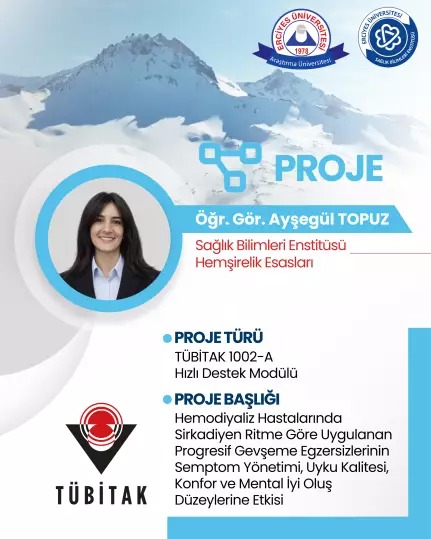 Meslek Yüksekokulumuz Öğr. Gör. Ayşegül TOPUZ 'un "Hemodiyaliz Hastalarında Sirkadiyen Ritme Göre Uygulanan Progresif Gevşeme Egzersizlerinin Semptom Yönetimi, Uyku Kalitesi, Konfor ve Mental İyi Oluş Düzeylerine Etkisi” başlıklı projesi TÜBİTAK 1002-A Hızlı Destek Modülü kapsamında desteklenmeye hak kazanmıştır.