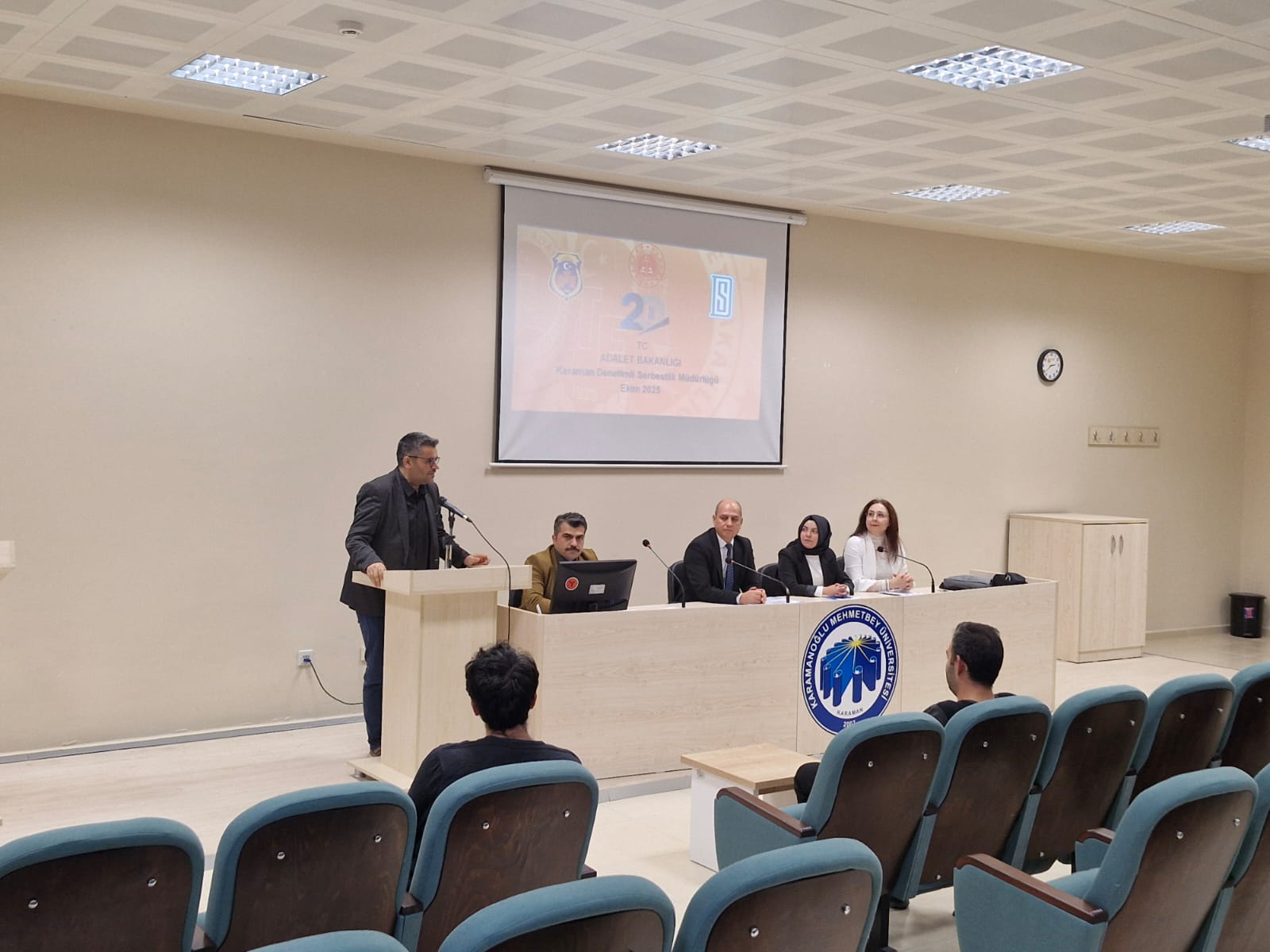05.11.2025 Çarşamba Günü saat 14:30'da İl Müdürü Sayın Serdal Dalhan, Sosyolog Raziye Tufan, Sosyolog Kübra Uğur ve Denetimli Serbestlik Personeli Mehmet Çetiner'in konuşmacı olarak yer aldığı 20. Yılında Denetimli Serbestlik Konferansı Edebiyat Fakültesi Konferans Salonunda yapılmıştır.