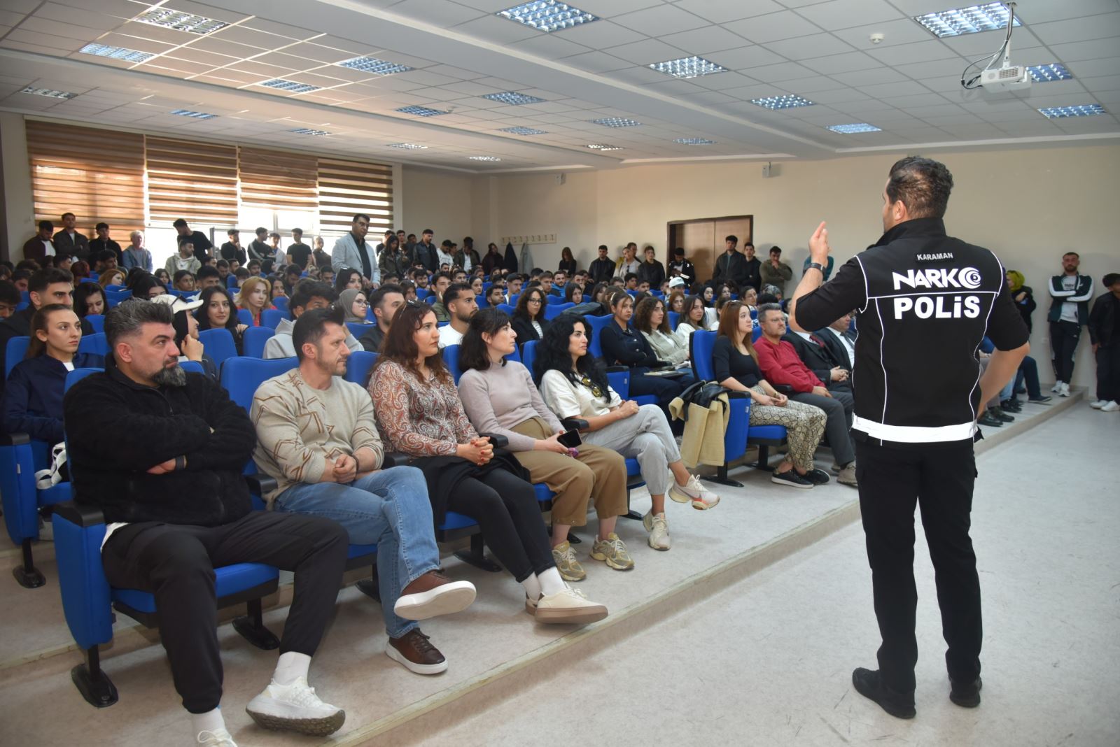 Fakültemiz ile Karaman Emniyet Müdürlüğü işbirliğinde 31 Mart 2026 Salı günü saat 13.00'de Fakültemiz Ali Gürbüz Konferans Salonunda Fakültemiz öğrencilerine yönelik "Narko Gençlik Madde Bağımlılığı İle Mücadele Semineri" düzenlendi. İlgili seminer için Karaman Emniyet Müdürlüğü Narkotik Suçlarla Mücadele Şube Müdürlüğüne teşekkür ederiz.