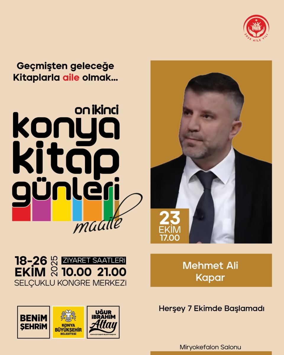 Tarih Bölümü Öğretim Üyesi Doç. Dr. Mehmet Ali Kapar 18-26 Ekim 2025 tarihleri arasında düzenlenen 12. Konya Kitap Günlerinde, "Herşey 7 Ekimde Başlamadı" adlı oturumda konuşmacı olarak yer aldı.