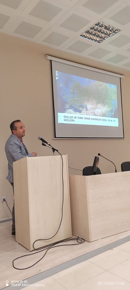 Assistant Professor Mevlüt Günler, a faculty member of the History Department, delivered a conference on the Place and Importance of the Karamanids in Turkish History. In his speech, Dr. Günler expressed the following views: “The Karamanid Principality was founded in the Taurus Mountains by Kerimüddin Karaman Bey of the Oghuz Afshar tribe; with Larende as its center, it seized Konya, adopted the title ‘Lord of Anatolia,’ and, by decree, declared Turkish the official language, thereby assuming the political standard-bearership of Turkish identity. Through port commerce, a Turkmen cavalry army, and alliance politics against the Ilkhanids, it rivaled the Ottomans over a vast territory and, upon its eventual annexation, played a critical role in completing Anatolian Turkish unity.” The conference concluded thereafter.