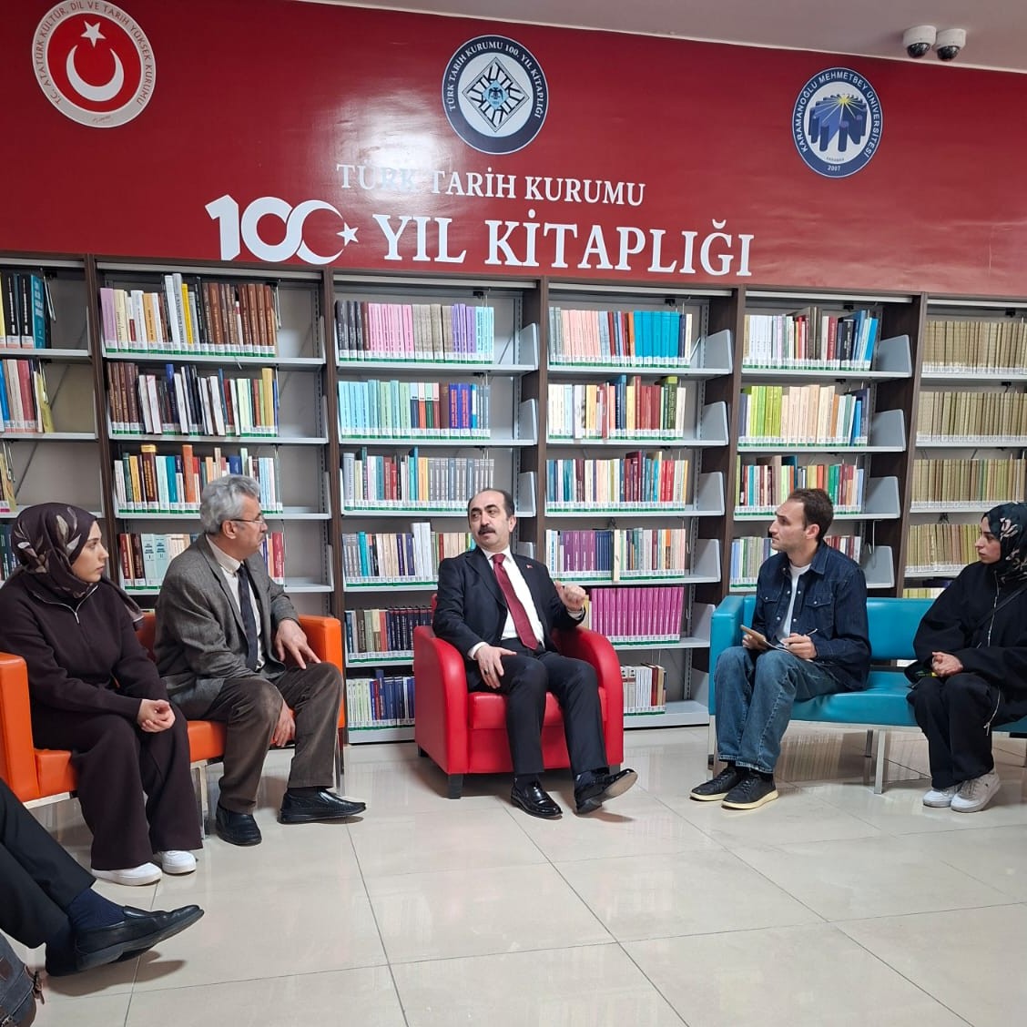06.04.2026 tarihinde üniversitemiz kütüphanesinde “100. Yıl Kitaplığı” düzenlenen törenle hizmete açıldı. Törene Karaman Milletvekili Osman Sağlam, Türk Tarih Kurumu Başkanı Prof. Dr. Yüksel Özgen, Karamanoğlu Mehmetbey Üniversitesi Rektörü Prof. Dr. Mehmet Gavgalı, Rektör Yardımcısı Prof. Dr. İdris Nebi Uysal, il ve üniversite protokolü katıldı. Açılış programına tarih bölümü akademik personeli ve öğrencileri de yoğun ilgi gösterdi.