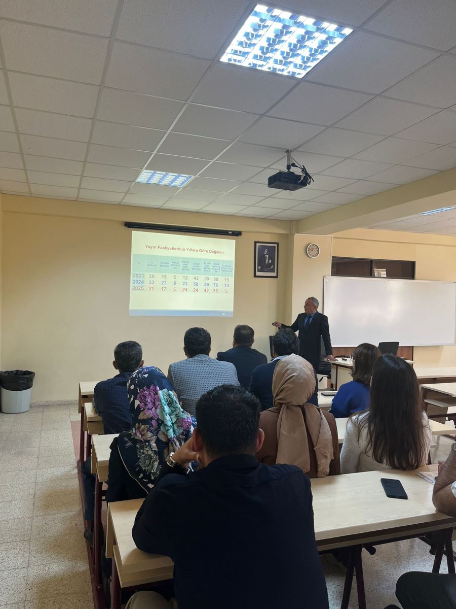Yüksekokulumuzun 2025–2026 Akademik Kurul Toplantısı, Rektör Yardımcımız Prof. Dr. Nevzat AYDIN’ın katılımıyla gerçekleştirildi. Açılışta Yüksekokul Müdürümüz Doç. Dr. Ali BİLGİÇ, birimde gerçekleştirilen çalışmalar, öğrenci odaklı iyileştirmeler, projeler ve yayın performansına ilişkin sunum gerçekleştirdi.