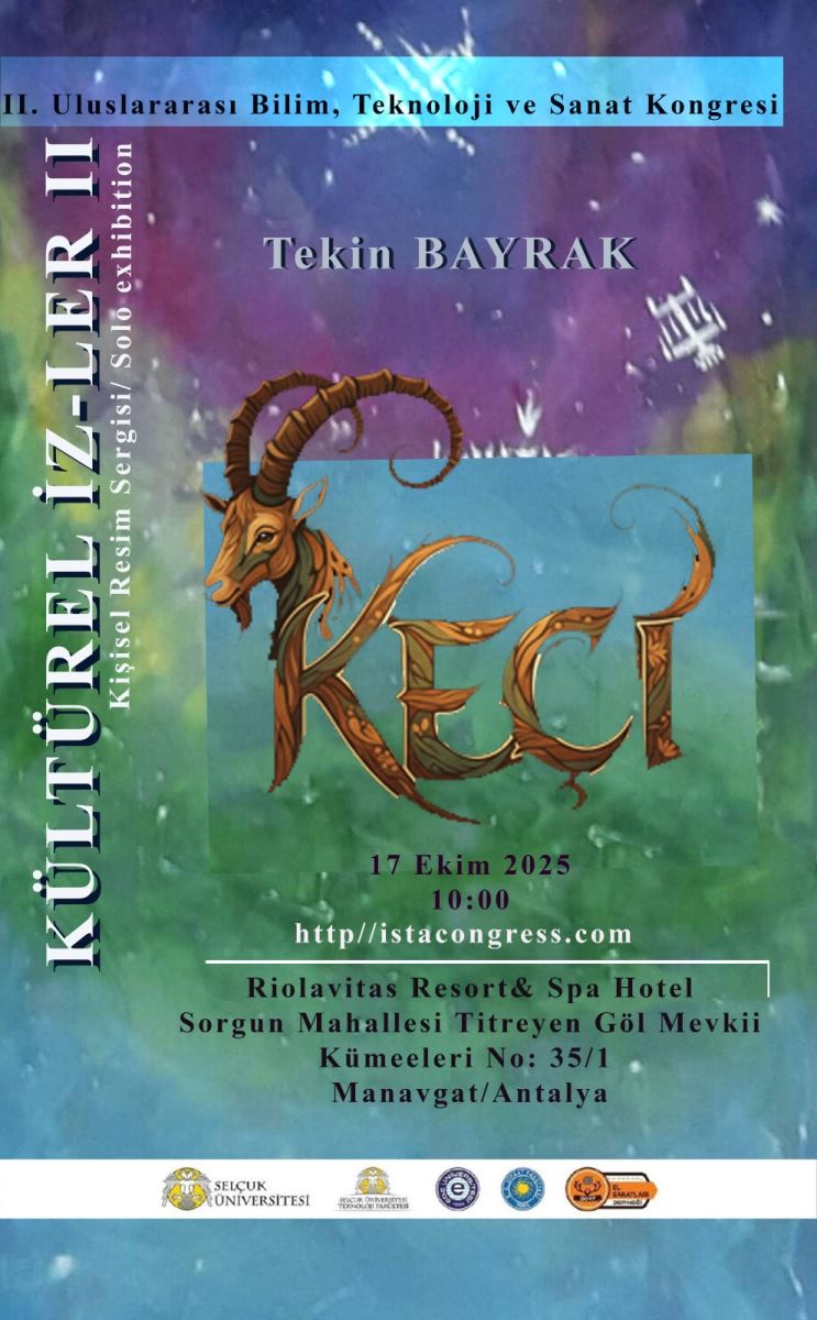 KMÜ Teknik Bilimler Meslek Yüksekokulu El Sanatları Bölümü Öğretim Elemanı Dr. Öğr. Üyesi Tekin BAYRAK, “Kültürel İz-ler II” adlı ikinci kişisel resim sergisini açtı. Riolavitas Resort & Spa Hotel’in resim galerisinde ziyarete açılan sergide, Türk kültürünün ilk izleri arasında değerlendirilen keçi imgesi ve sembollerini odağına alan eserler farklı ölçülerde sanatseverlerle buluştu.