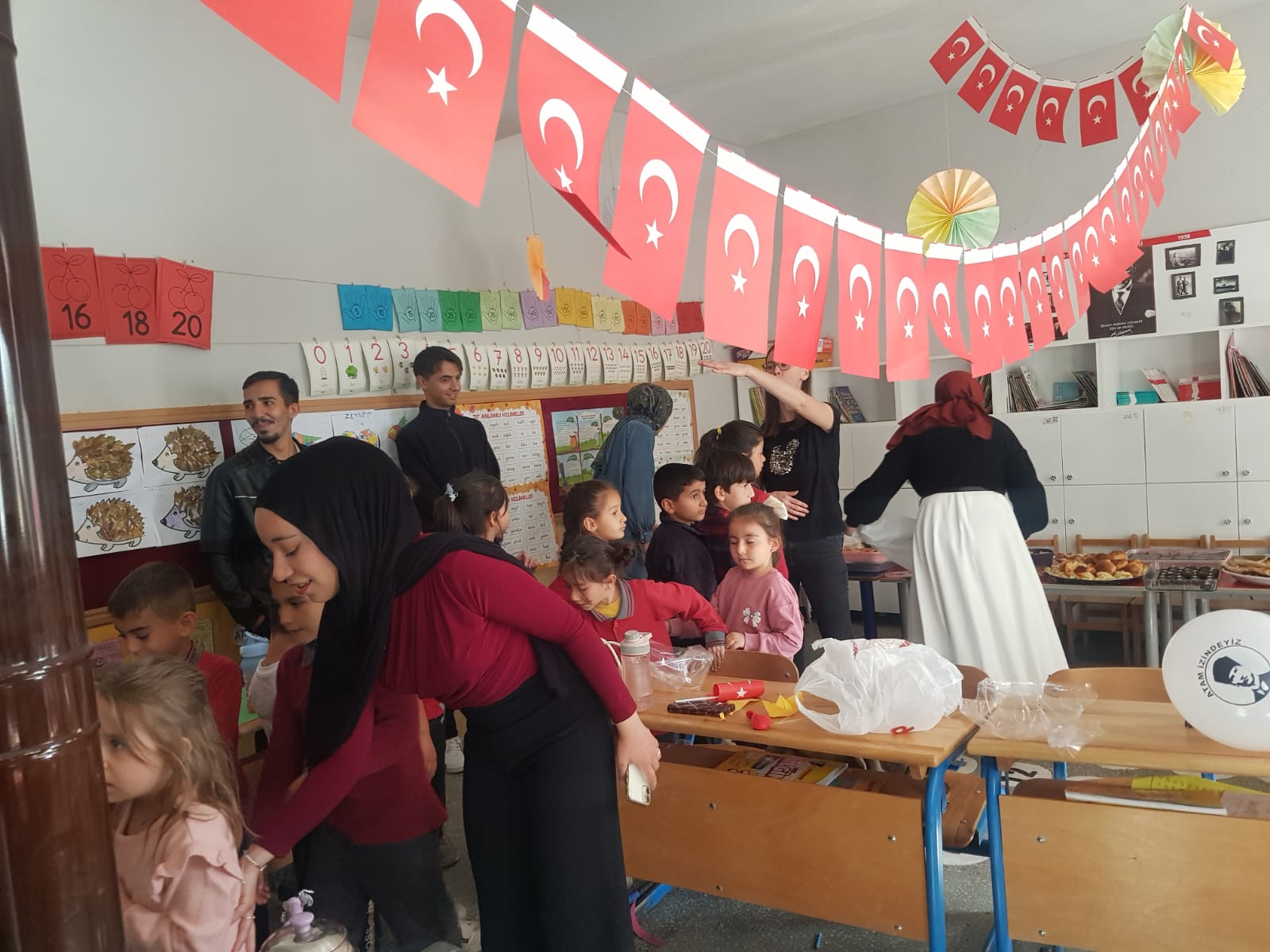 Yüksekokulumuz Sosyal Sorumluluk ve Halk Kültürü Öğrenci Topluluğu, Akademik Danışman Doç. Seda DİLAY rehberliğinde 29 Ekim Cumhuriyet Bayramı kapsamında Alaçatı Köyü İlkokuluna anlamlı bir ziyaret gerçekleştirdi. Topluluk üyeleri, ilkokul öğrencileriyle bir araya gelerek Cumhuriyet coşkusunu birlikte yaşadılar ve çeşitli etkinliklerle öğrencilerle keyifli vakit geçirdiler. Ziyaret, minik öğrencilere verilen hediyeler ve yapılan ikramlarla son buldu.