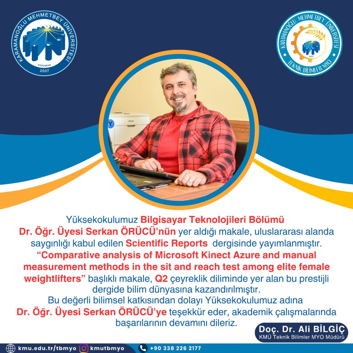 Yüksekokulumuz Bilgisayar Teknolojileri Bölümü Dr. Öğr. Üyesi Serkan ÖRÜCÜ’nün yer aldığı makale, uluslararası alanda saygınlığı kabul edilen Scientific Reports dergisinde yayımlanmıştır. “Comparative analysis of Microsoft Kinect Azure and manual measurement methods in the sit and reach test among elite female weightlifters” başlıklı makale, Q2 çeyreklik diliminde yer alan bu prestijli dergide bilim dünyasına kazandırılmıştır.