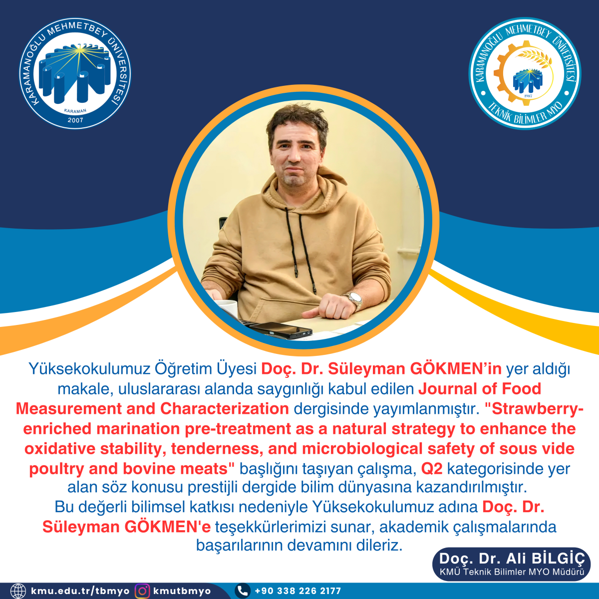 Bu değerli bilimsel katkısı nedeniyle Yüksekokulumuz adına Doç. Dr. Süleyman GÖKMEN'e teşekkürlerimizi sunar, akademik çalışmalarında başarılarının devamını dileriz.