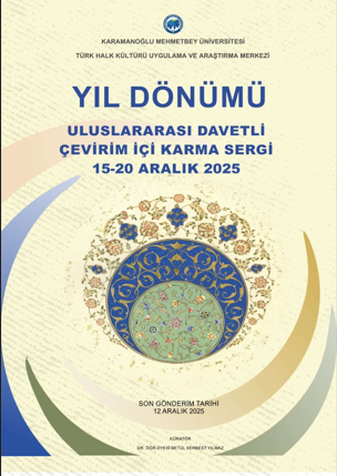 Karamanoğlu Mehmetbey Üniversitesi Türk Halk Kültürü Uygulama ve Araştırma Merkezi bünyesinde “Yıldönümü” Uluslararası Davetli, Jürili Çevrimiçi Karma Sergi düzenlenmektedir. Sergi 15 Kasım – 20 Aralık 2025 tarihleri arasında çevrimiçi yapılacaktır.