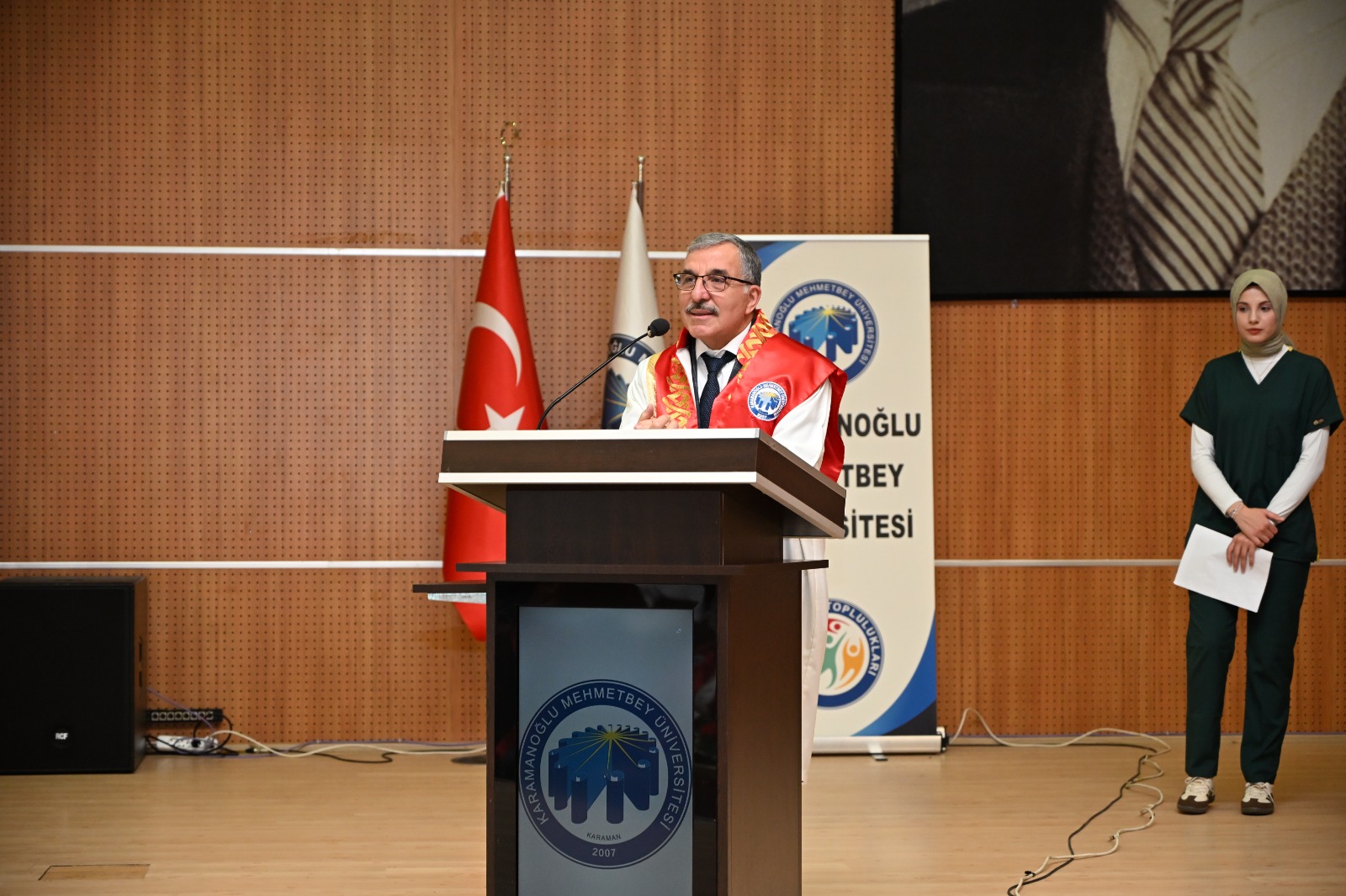 Karamanoğlu Mehmetbey Üniversitesi Tıp Fakültesinde düzenlenen törene KMÜ Rektörü Prof. Dr. Mehmet GAVGALI, Rektör Yardımcısı Prof. Dr. Murat MAYDA, Rektör Yardımcısı İdris Nebi UYSAL ve Tıp Fakültesi Dekanı Prof. Dr. Pembe OLTULU, akademisyenler, öğrenciler ve aileleri katıldı.