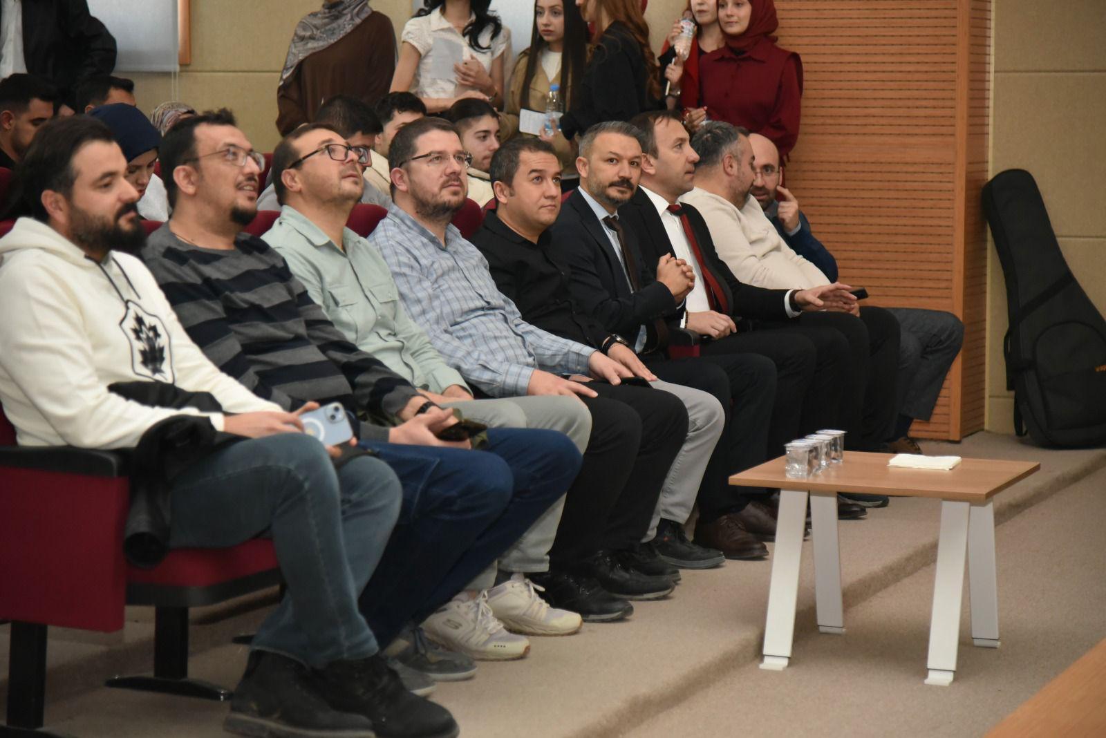 Doç. Dr. Halil Erdem Çocuk ve Doç. Dr. Taşkın Soysal danışmanlığında Topluma Hizmet Uygulamaları Dersi kapsamında gerçekleştirilen “Vuslatın Ahengi” şiir dinletisi, öğrencilerimizin sanatsal ifade becerilerini, sahne duruşlarını ve akademik sorumluluk bilincini başarıyla ortaya koydukları nitelikli bir etkinlik olarak tamamlanmıştır.