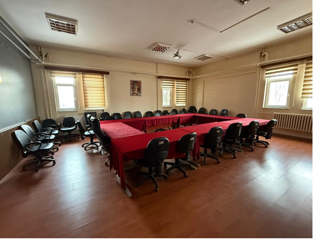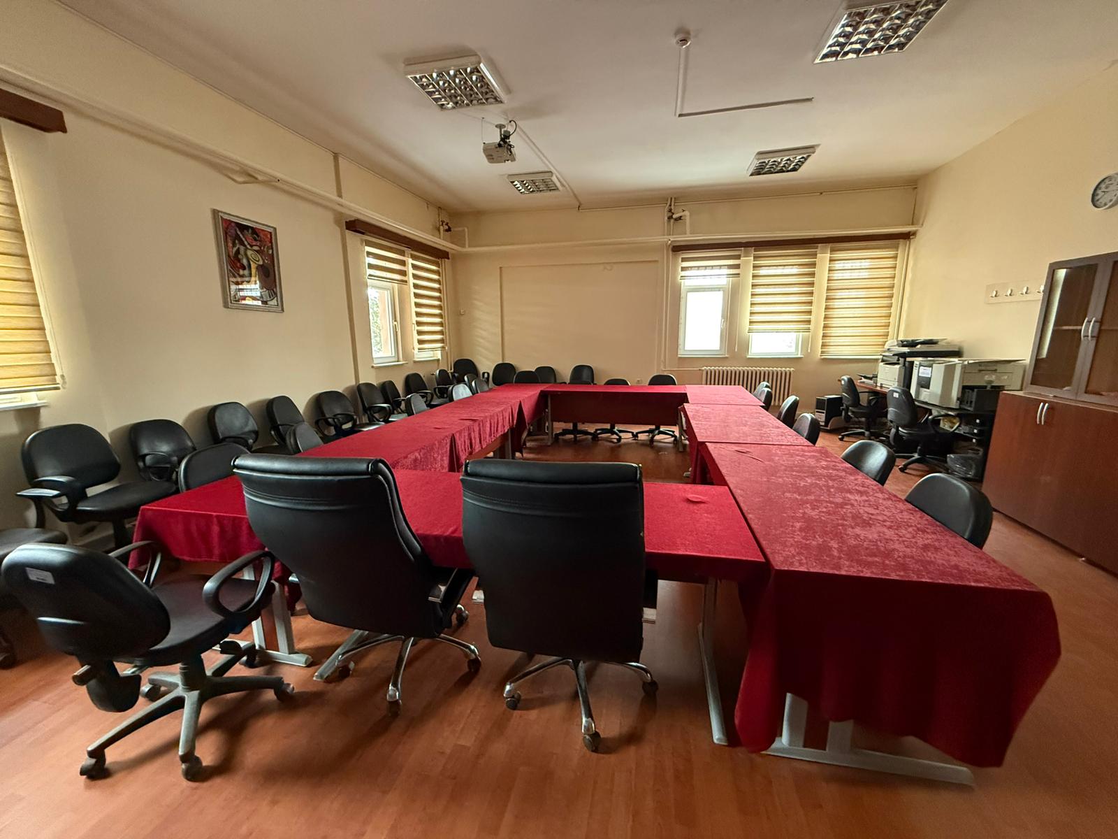 Fakültemizin ve Bölümümüzün seminer odası, öğrenciler ve akademisyenler için modern ve işlevsel bir çalışma alanı sunar.