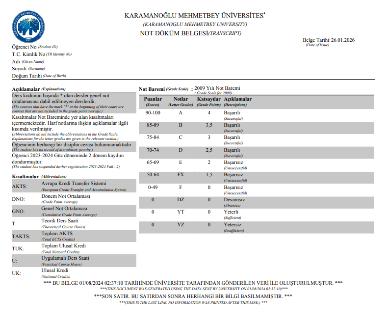 Yatay Geçiş Yaparken istenmekte olan Herhangi bir disiplin cezası almadığını gösterir belgeye ulaşmak için: E- Devlet uygulaması üzerinden giriş yapılarak arama kutusuna transkript yazılır, daha sonra son sayfanın açıklamalar (Explanations) kısmının alt tarafında göreceksiniz.