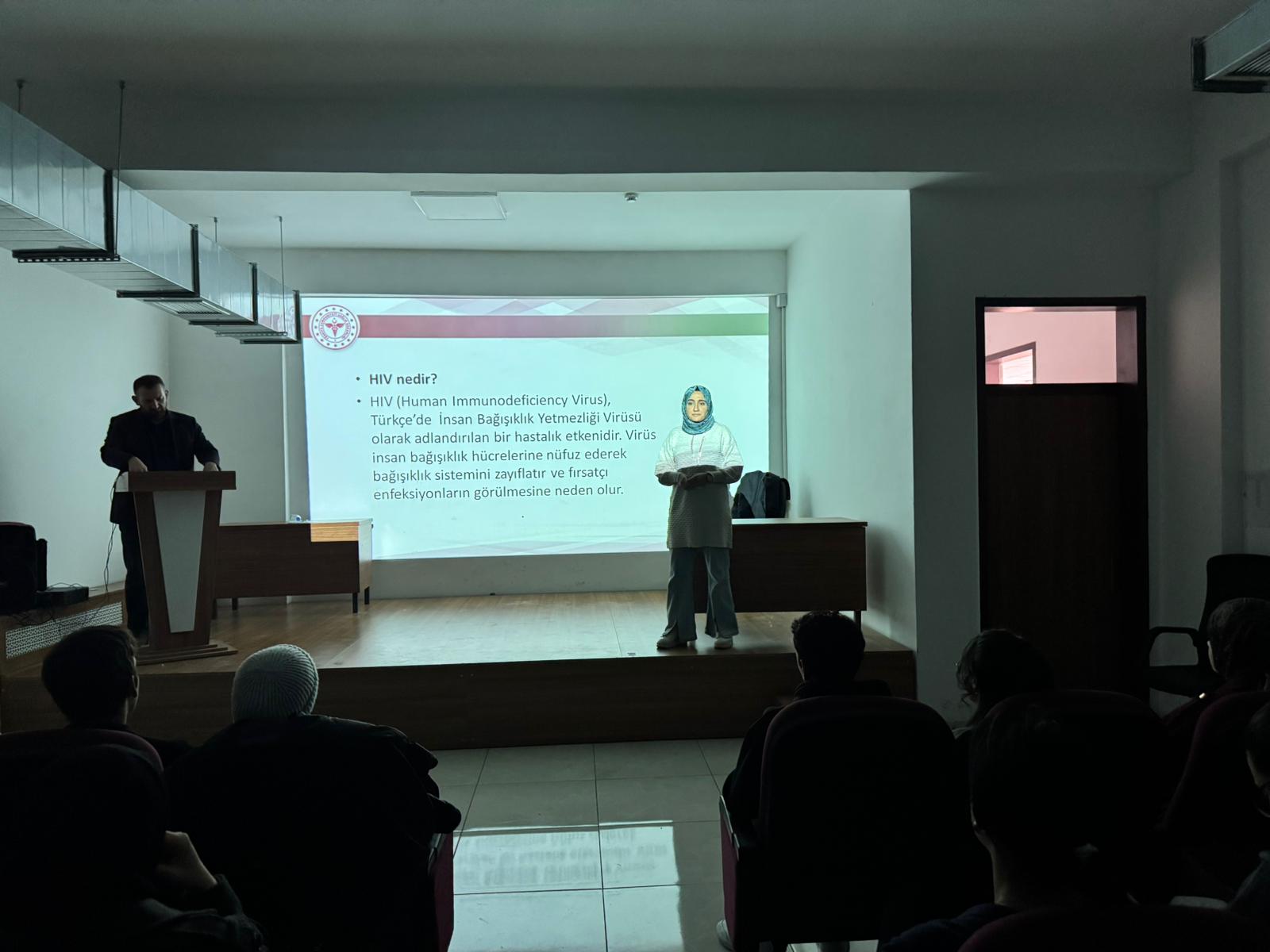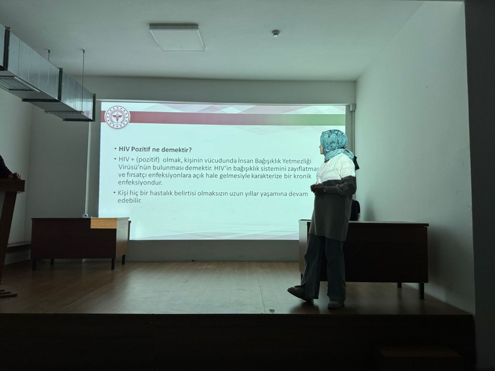 Meslek Yüksekokulumuzda AIDS ve HIV e yönelik olarak bilgilendirme eğitimi Ermenek Toplum Sağlığı Merkezinde görevli Ebe Esra ÇİFTÇİ tarafından verilmiştir.