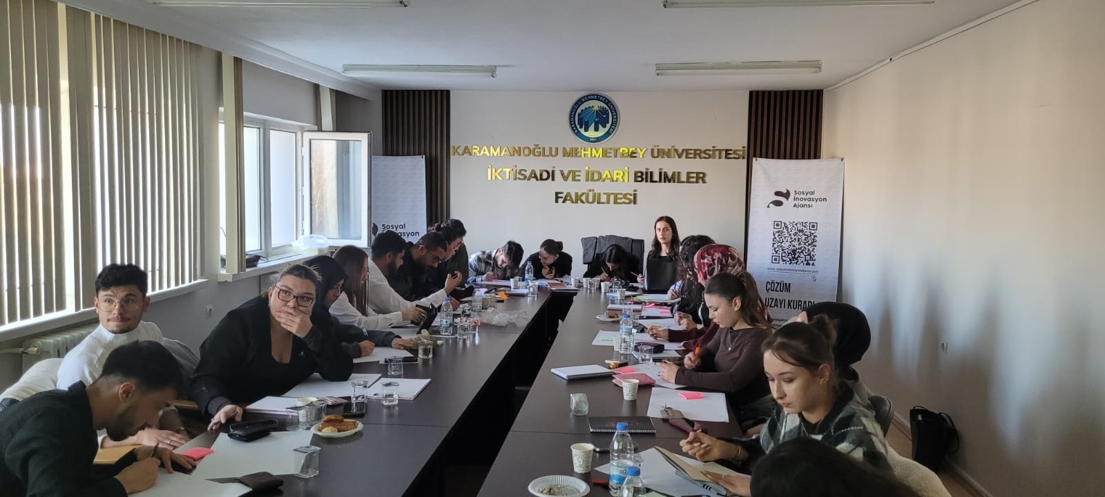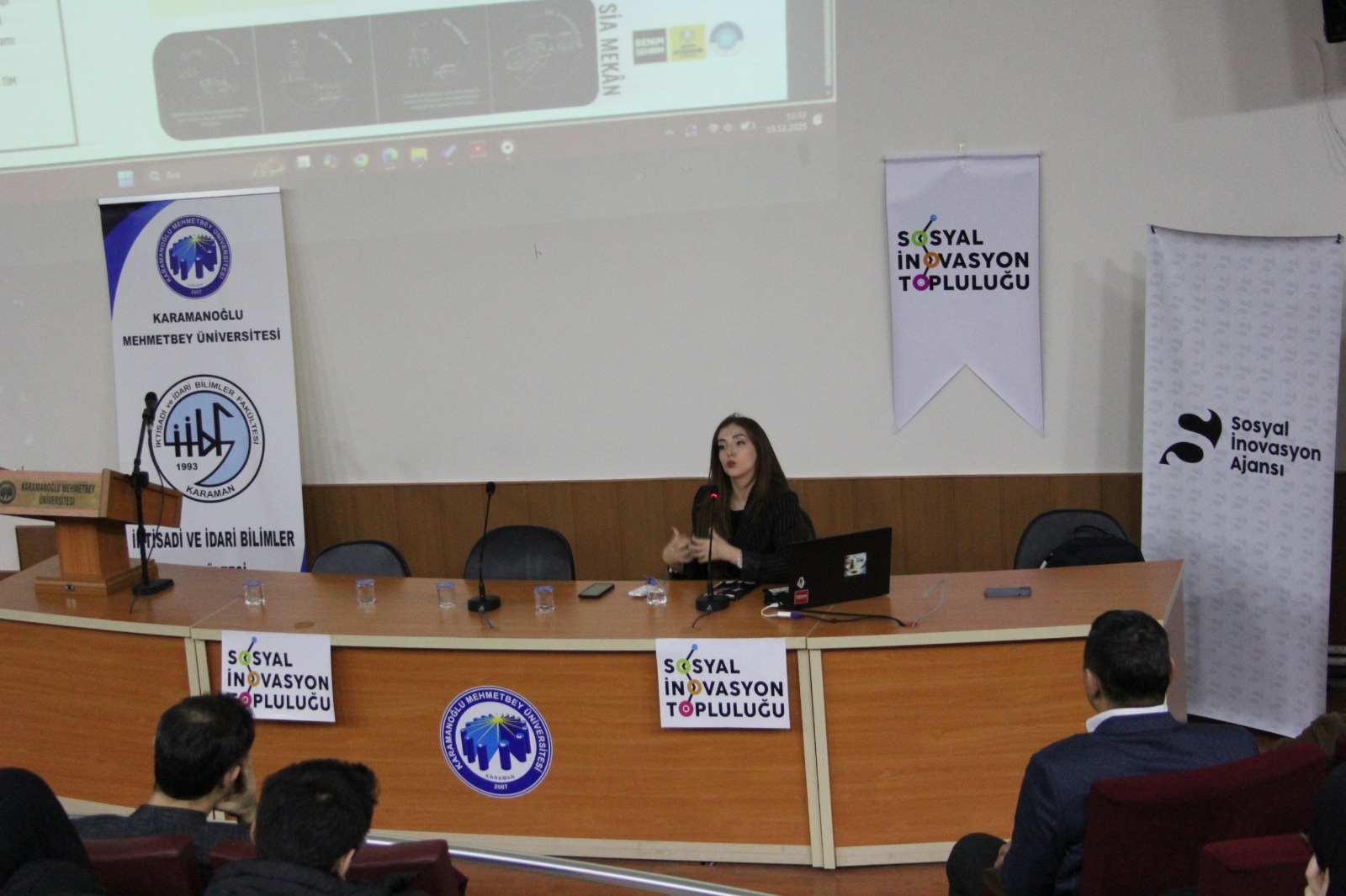 Karamanoğlu Mehmetbey Üniversitesi (KMU) İktisadi ve İdari Bilimler Fakültesi (İİBF) ev sahipliğinde, Sosyal İnovasyon Ajansı ve Sosyal İnovasyon Öğrenci Topluluğu tarafından; İşletme ile Uluslararası Ticaret ve İşletmecilik Bölümlerinin iş birliğiyle “Sosyal İnovasyon: Fikirden Toplumsal Etkiye” başlıklı program düzenlendi. Etkinlik kapsamında Sosyal İnovasyon Ajansı yetkilileri ve çalışanları üniversitemiz öğrencileriyle buluştu.