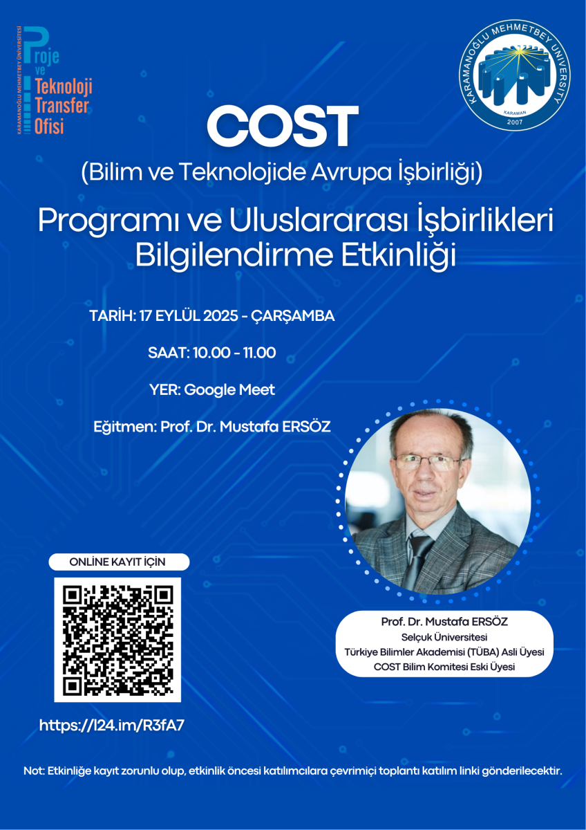 🚀 COST (Bilim ve Teknolojide Avrupa İşbirliği) Programı ve Uluslararası İşbirlikleri Bilgilendirme Etkinliği!